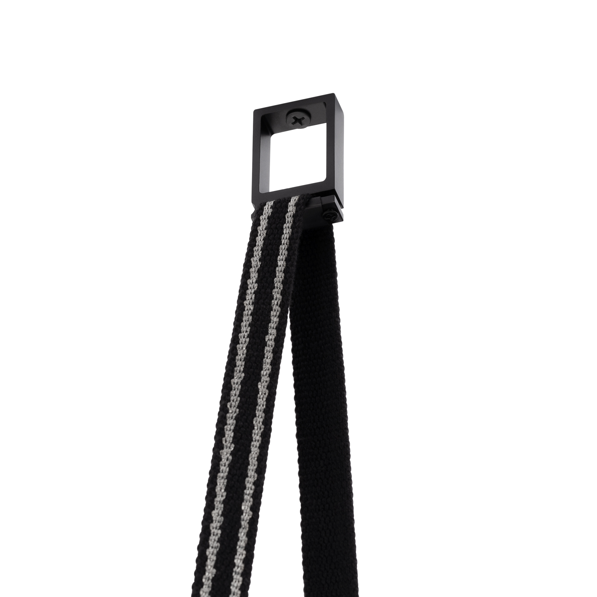 Потолочная крепление в виде проушины черного цвета для подвесного монтажа профиля на токопроводящие ремни. Крепится к потолку. Габаритные размеры составляют 10мм в длину, 28 мм в ширину и 45,5 мм в высоту.