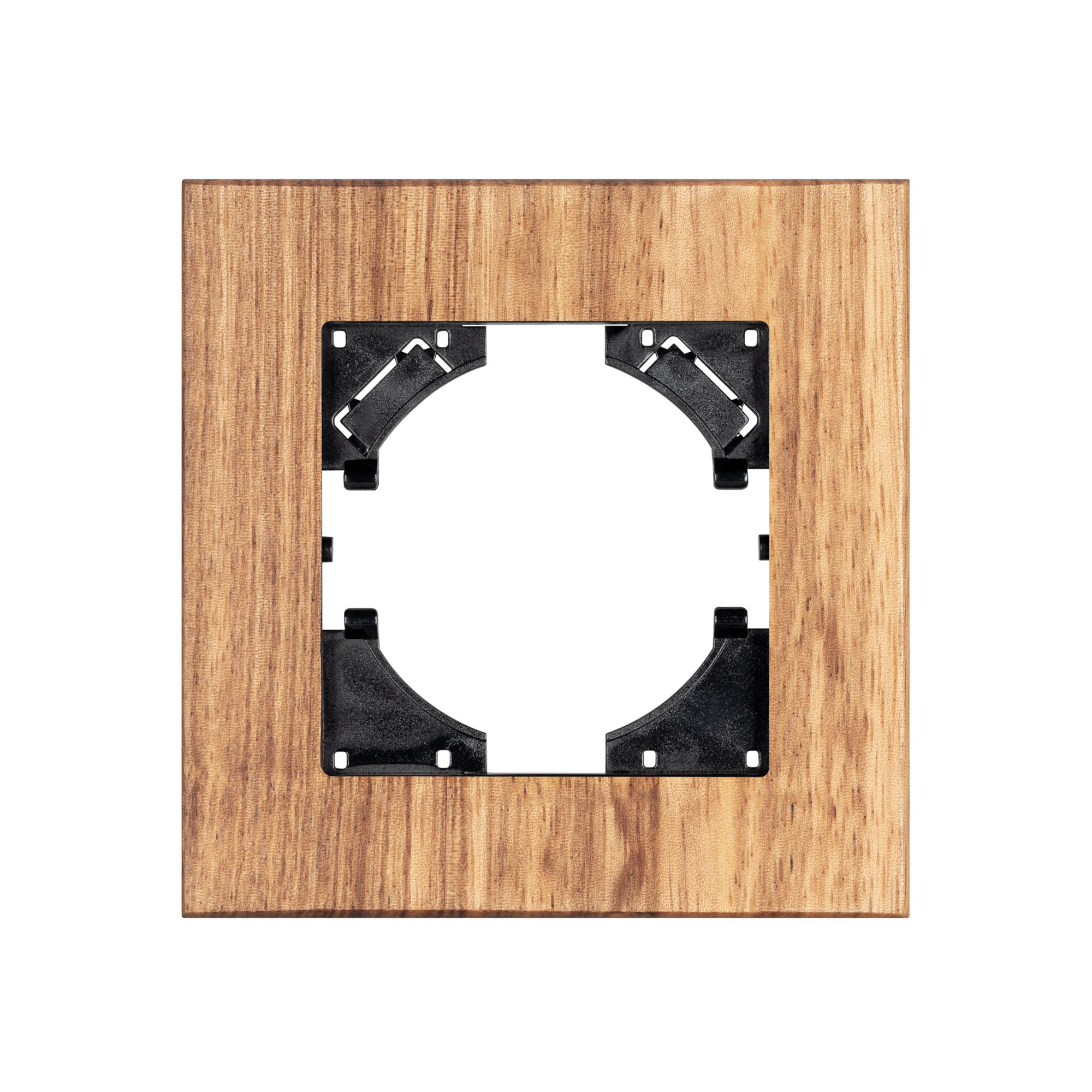 Рамка пластиковая на 1 пост с накладкой из натурального дерева, под встраиваемый механизм. Цвет - натуральное дерево* (осветленное). Уровень герметичности IP20. Ориентация монтажа - горизонтальная (основным ориентиром служат посадочные выступы для накладки механизма).