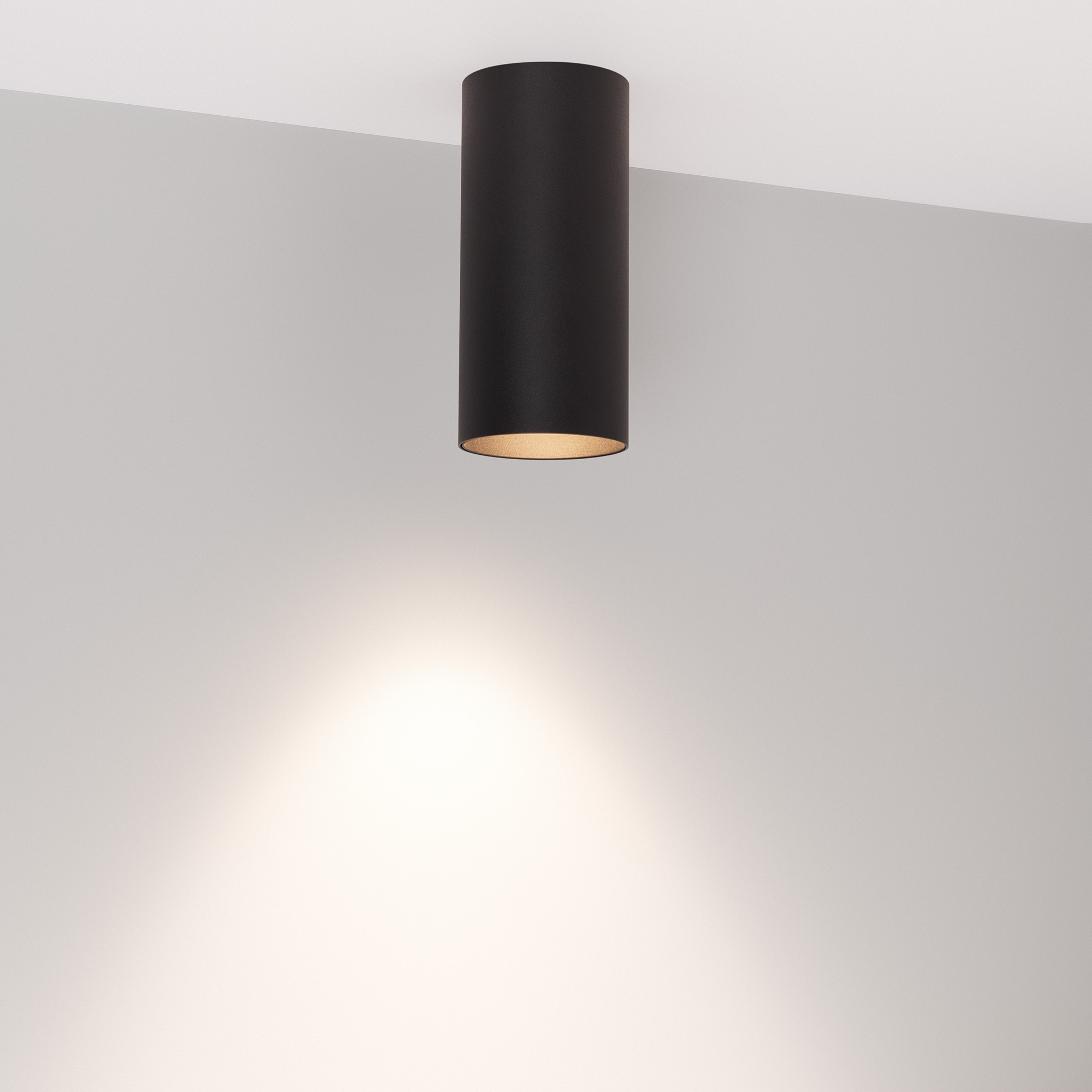 Накладной светильник. Мощность 12 Вт, св. поток 1200 лм, 100 лм/Вт, дневной 4000 K, CRI>90, угол 60°, напряжение питания 230 В. Чёрный круглый корпус из алюминия, экран PMMA, степень защиты IP40. Размер: диаметр 60 мм, высота 130 мм. Монтаж накладной. Встроенный драйвер 27-42 В, 300 мA, пульсация <1%.