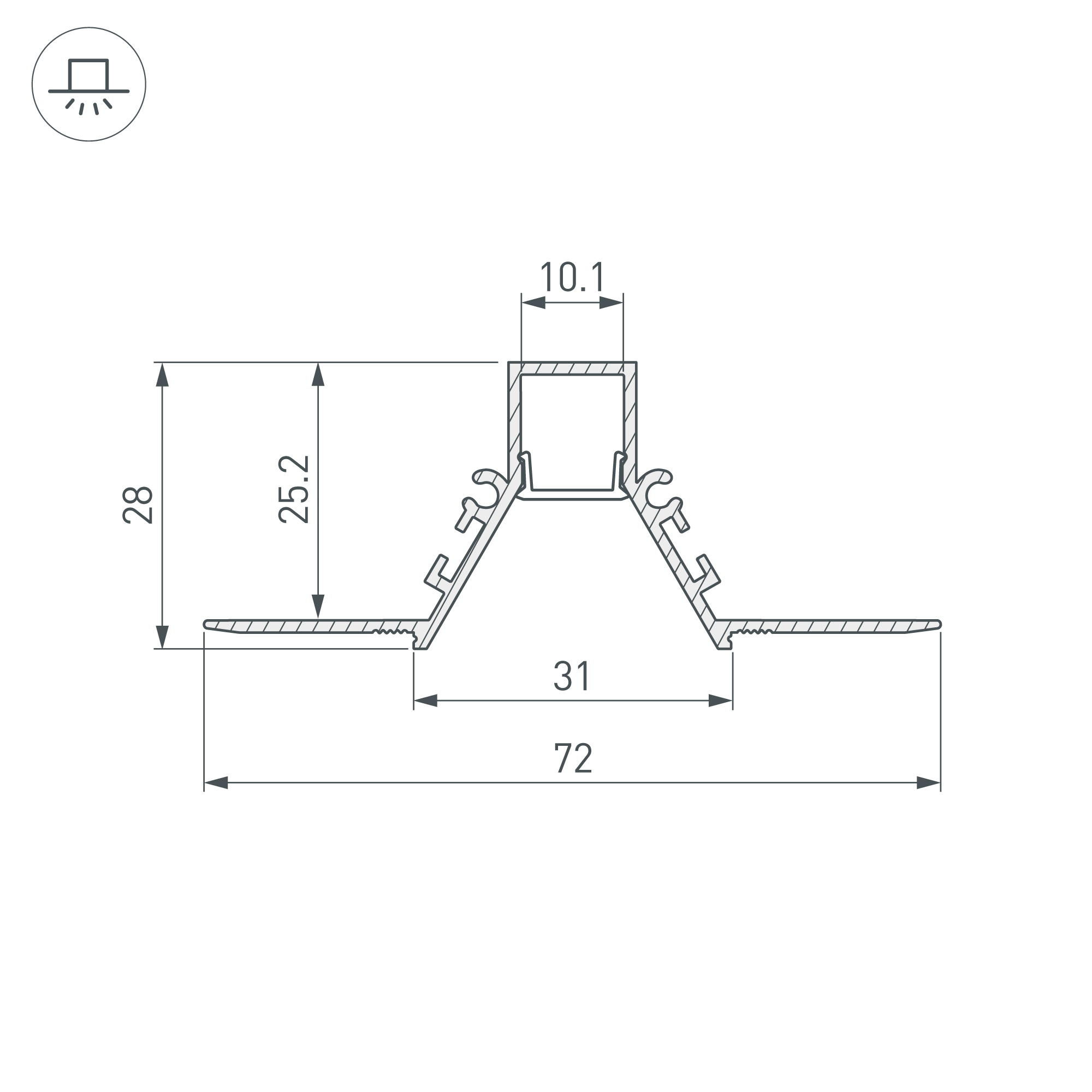 Встраиваемый профиль со скрытым фланцем под строительную отделку из алюминия черного цвета для основной и контурной подсветки помещений. Экран утоплен в плоскости профиля, что позволяет скрыть источник света от прямого контакта с глазами. Габаритные размеры профиля составляют 2000 мм в длину, 72 мм в ширину и 28 мм в высоту. Площадка для установки светодиодных лент позволяет использовать ленту шириной до 10,1 мм и мощностью до 28,6 Вт/м. Это обеспечивает гибкость в выборе светодиодных лент и создает потрясающие световые решения.