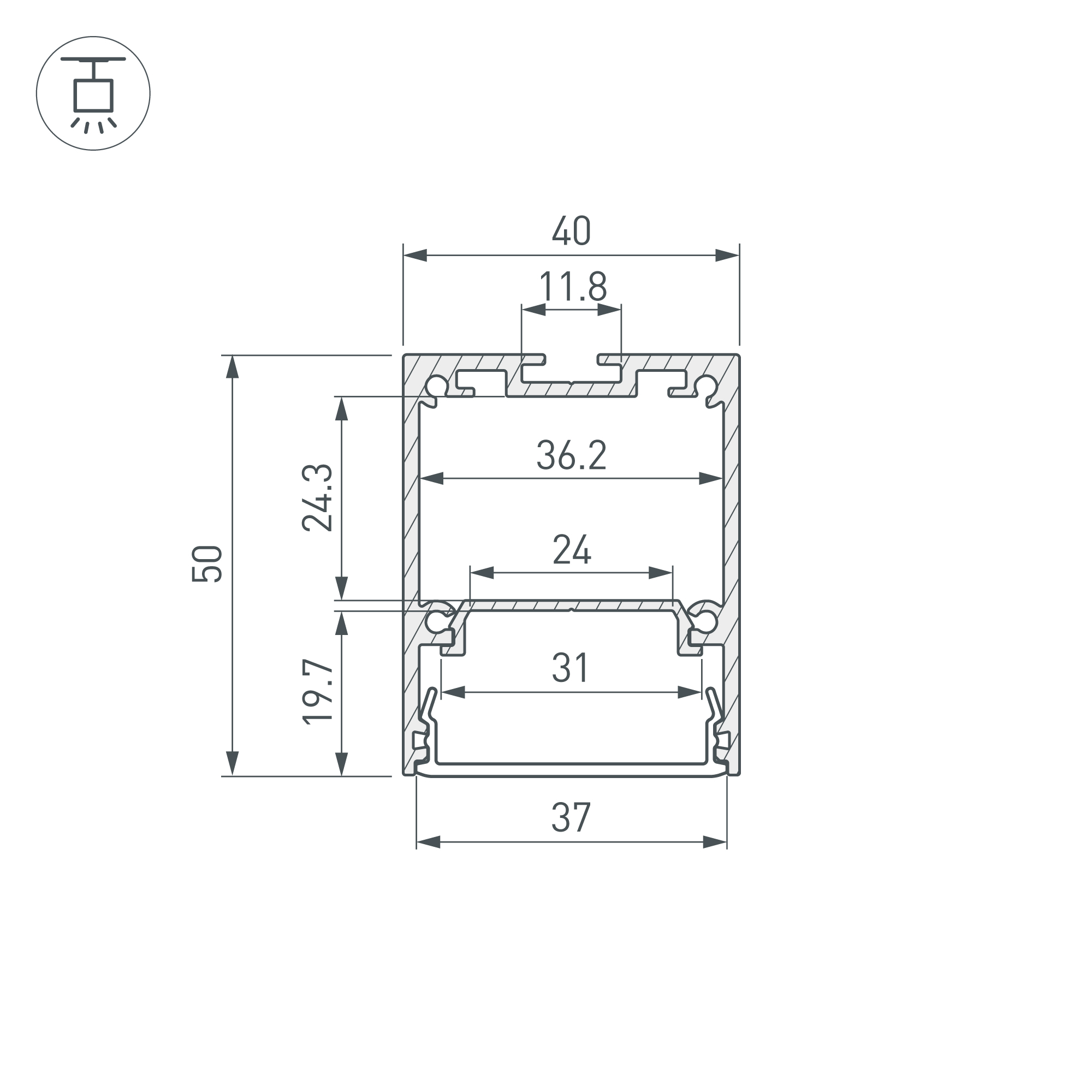 Накладной/подвесной профиль из алюминия черного цвета для основного освещения с возможностью герметизации до IP54 с помощью аксессуаров к профилю (уплотнительная резинка, заглушки, экраны, муфты) без дополнительного использования силиконового герметика, до IP65 с помощью аксессуаров к профилю (уплотнительная резинка, заглушки, экраны, муфты) при условии дополнительного использования силиконового герметика. Габаритные размеры профиля составляют 2000 мм в длину, 40 мм в ширину и 50 мм в высоту. Площадка для установки светодиодных лент позволяет использовать ленту шириной до 24 мм и мощностью до 36 Вт/м. Это обеспечивает гибкость в выборе светодиодных лент и позволяет создать потрясающие световые решения. Экран, заглушки и другие аксессуары не включены в комплект и приобретаются отдельно. Цена указана за 1 метр профиля. Отличное решение для создания современных световых проектов.