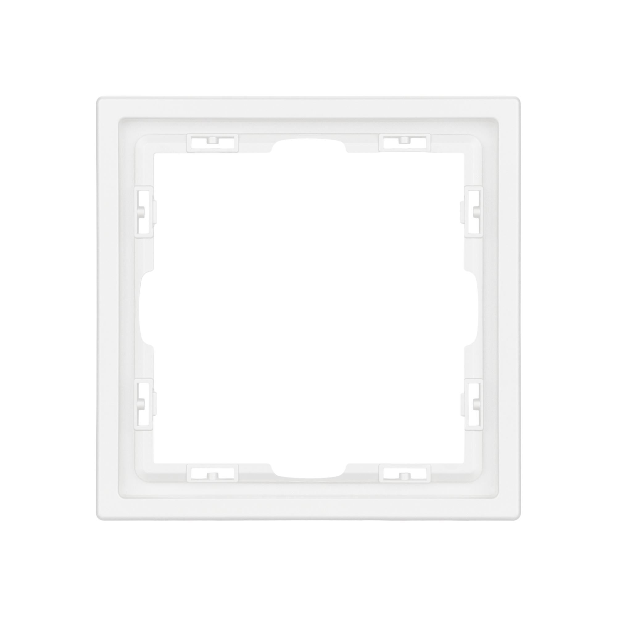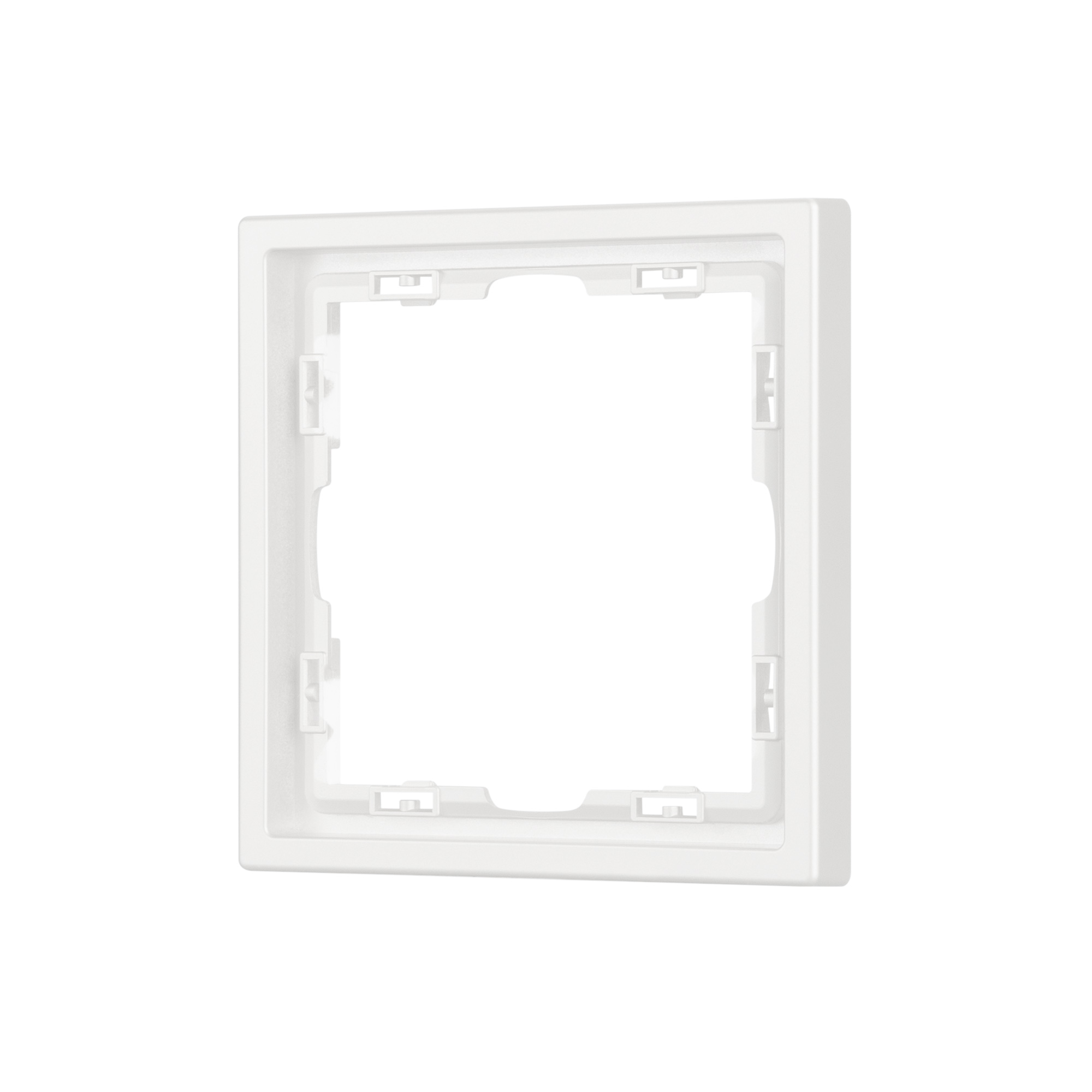 Корпус рамки выполнен в цвете белый кварц и имеет покрытие Soft-Touch, что придает изделию приятные тактильные свойства. Толщина корпуса составляет 8,5 мм, что позволяет эффективно интегрировать рамку в интерьерные решения любого уровня сложности.