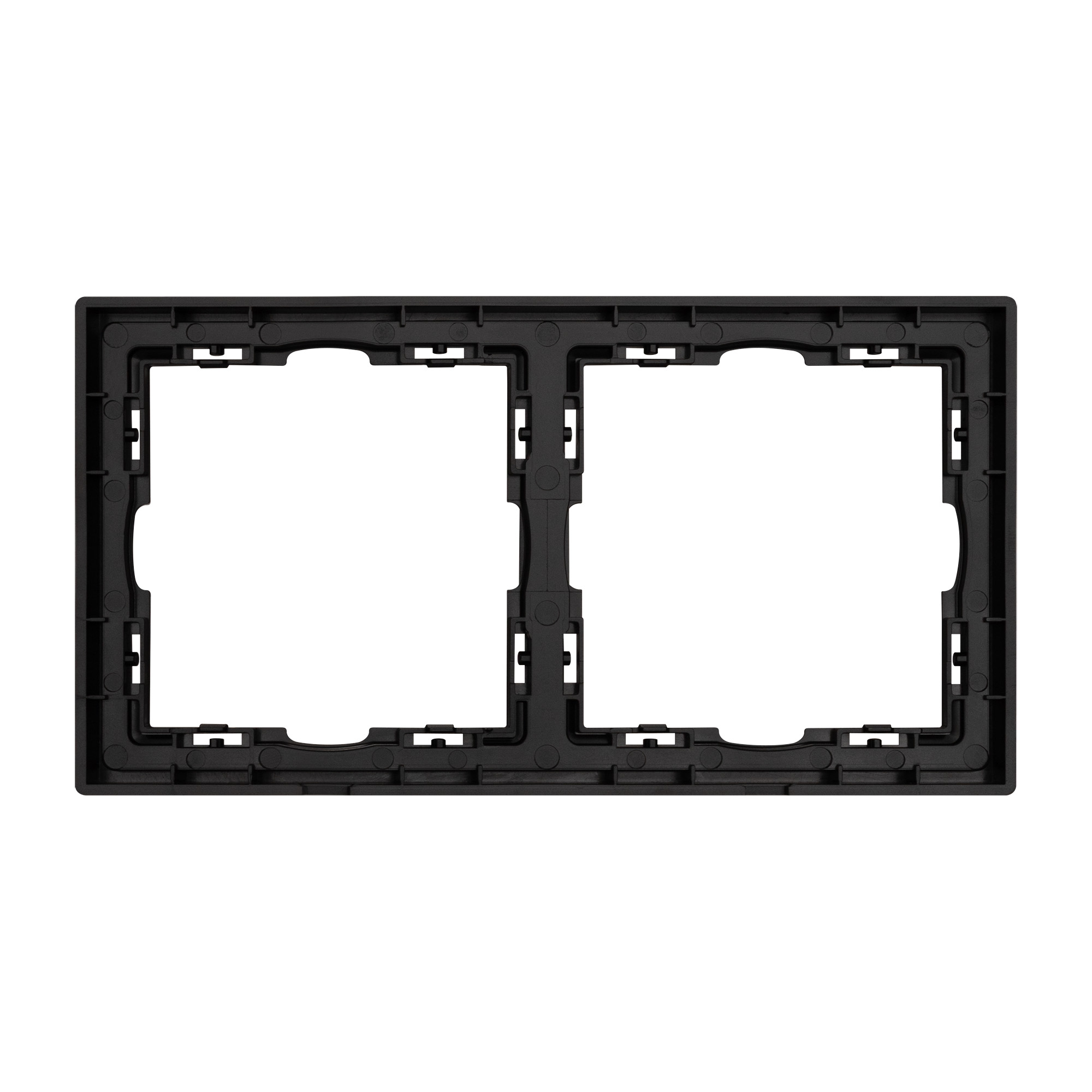 Рамка пластиковая на 2 поста, под встраиваемый механизм. Цвет - черный оникс, с Soft-Touch покрытием. Среднего уровня герметичности IP20. Ориентация монтажа горизонтальная. Габаритные размеры: длина 152 мм, ширина 81 мм, высота 8.55 мм. Гарантийный срок 12 мес.