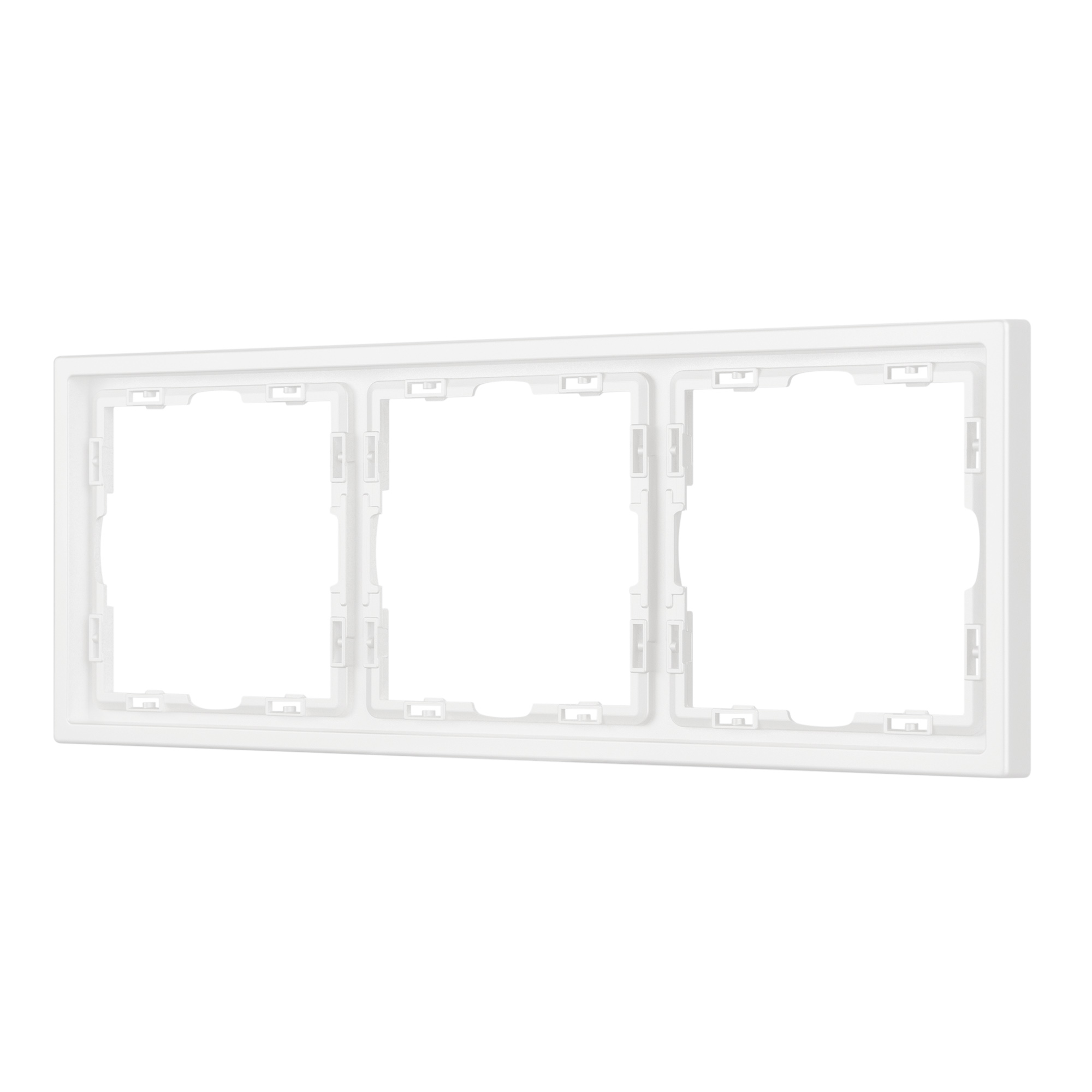 Рамка пластиковая на 3 поста, под встраиваемый механизм. Цвет - белый кварц, с Soft-Touch покрытием. Среднего уровня герметичности IP20. Ориентация монтажа горизонтальная. Габаритные размеры: длина 223 мм, ширина 81 мм, высота 8,55 мм. Гарантийный срок 12 мес.