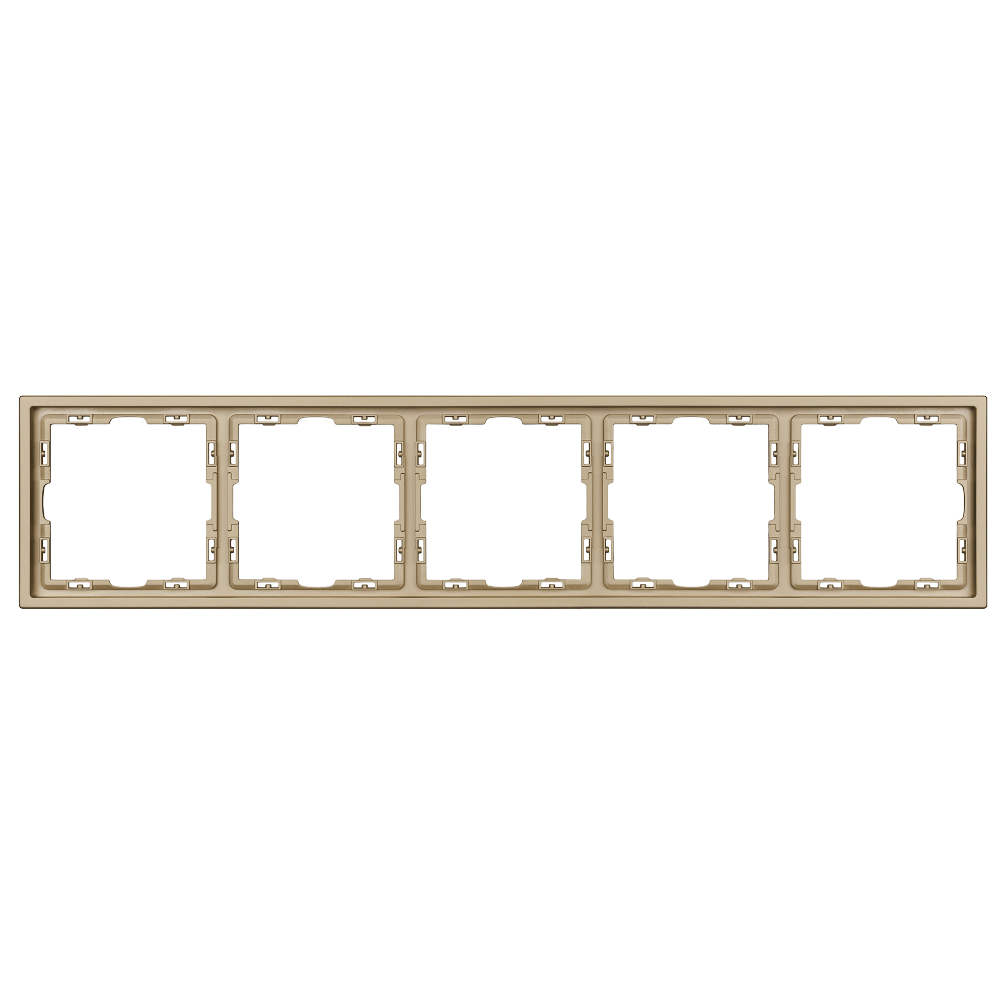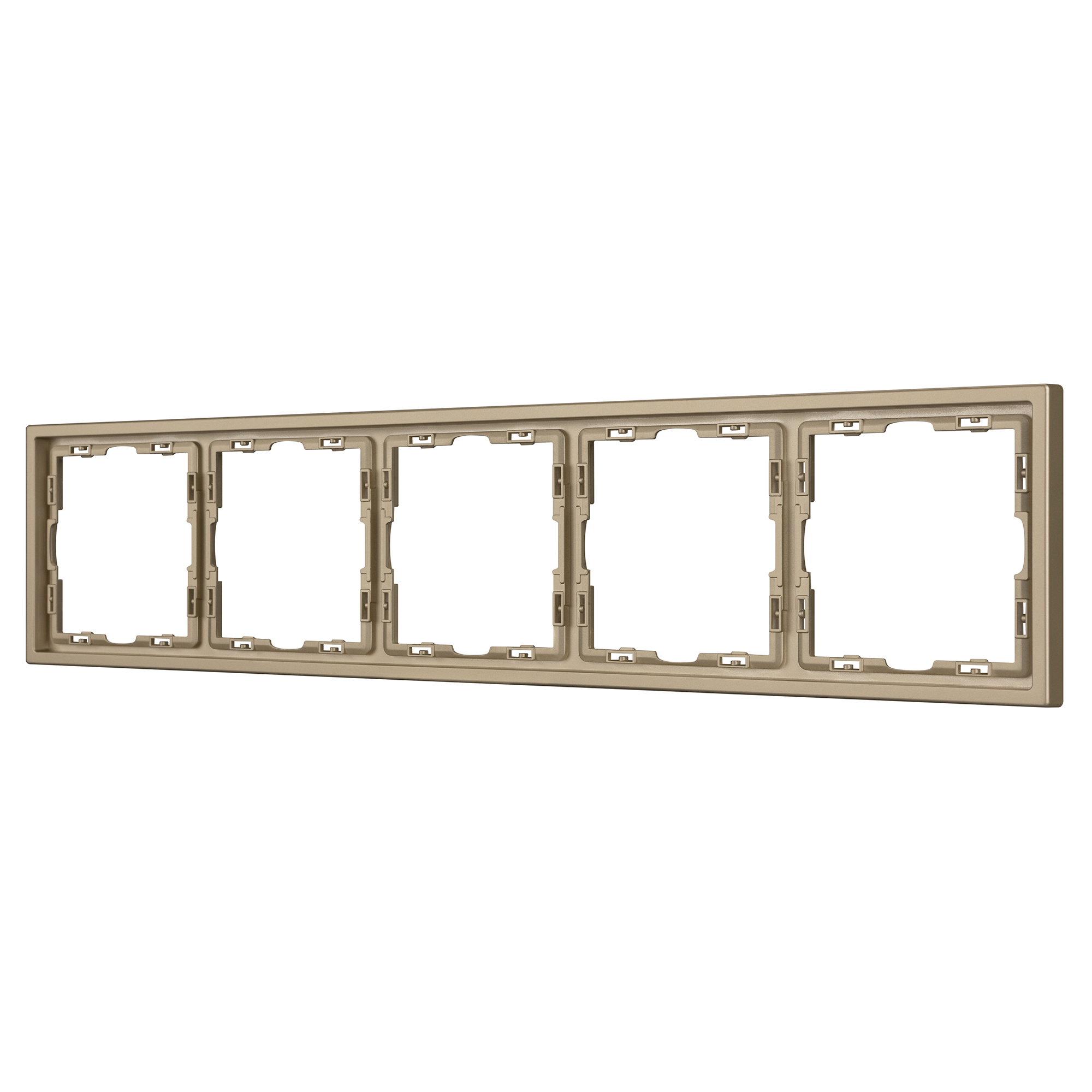 Рамка пластиковая на 5 постов, под встраиваемый механизм. Цвет - золотой песок, с Soft-Touch покрытием. Среднего уровня герметичности IP20. Ориентация монтажа горизонтальная. Габаритные размеры: длина 365 мм, ширина 81 мм, высота 8.55 мм. Гарантийный срок 12 мес.