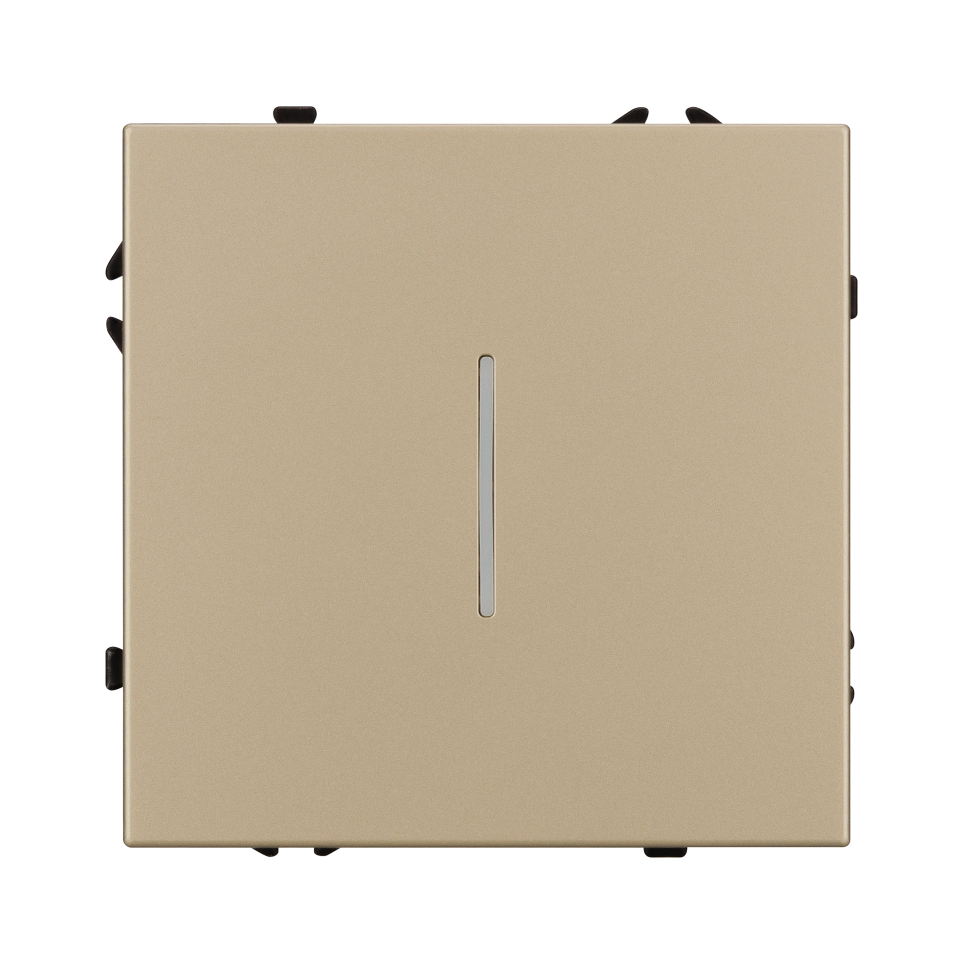 Механизм выключателя света клавишный на 1 пост 1 клавиша (непроходной). Цвет - золотой песок, с Soft-Touch покрытием. Клавиша имеют активную LED подсветку - cинего свечения. Без фронтальной рамки. Уровень пылевлагозащиты IP20. Выключатель устанавливается в стандартный круглый подрозетник круглого сечения диаметром 60мм. Габаритные размеры: длина 71 мм, ширина 71 мм, высота 52 мм. Гарантийный срок 10 лет.