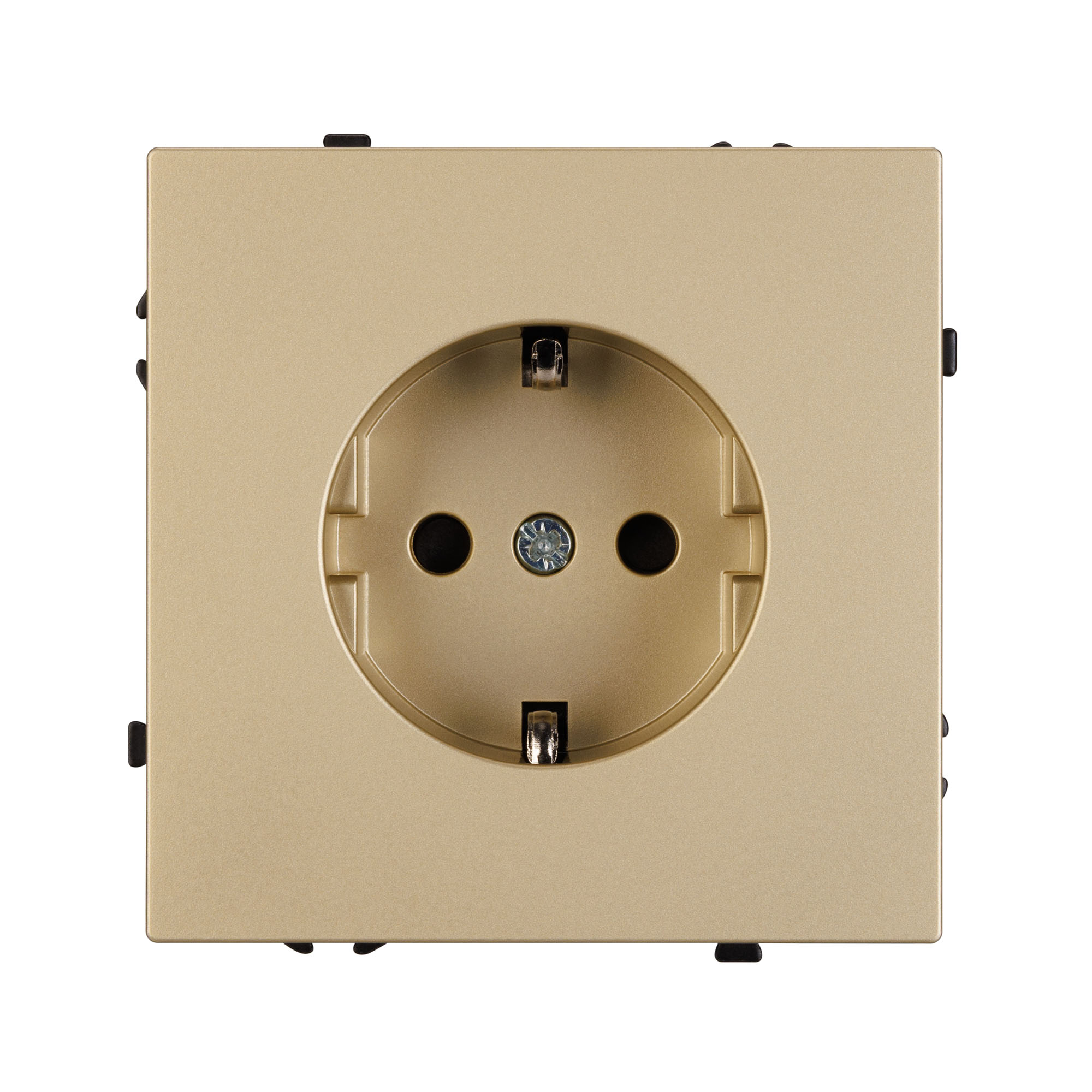 Механизм розетки с заземлением совместим с рамками серии NOBE, создает утонченный минималистичный вид. Скрытый тип монтажа позволяет гармонично встроить в интерьер любого современного дизайн-проекта. Видимая часть механизма выполнена из высококачественного пластика цвета золотой песок и имеет Soft-Touch покрытие, что придает изделию приятные тактильные ощущения и стильный внешний вид.
