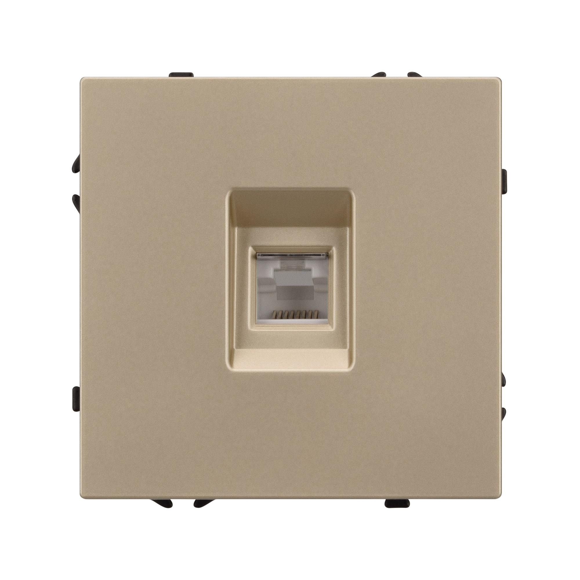 Механизм компьютерной розетки совместим с рамками серии NOBE, создает утонченный минималистичный вид. Скрытый тип монтажа позволяет гармонично встроить в интерьер любого современного дизайн-проекта. Видимая часть механизма выполнена из высококачественного пластика цвета золотой песок и имеет Soft-Touch покрытие, что придает изделию приятные тактильные ощущения и стильный внешний вид.