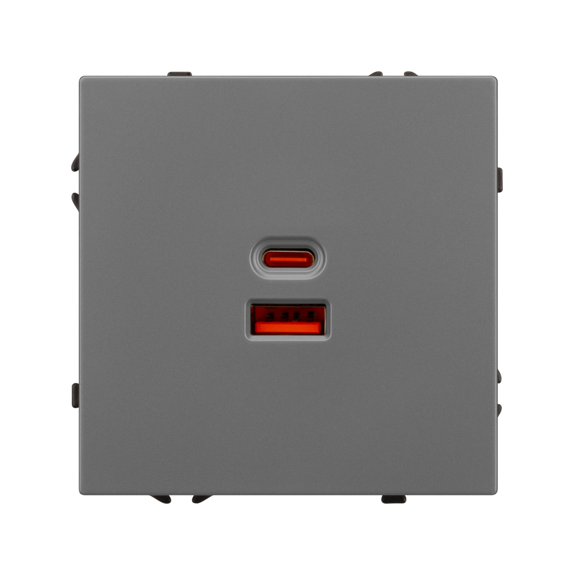 Механизм розетки с быстрой USB зарядкой, совместимый с рамками серии NOBE, создает утонченный минималистичный вид. Наличие USB Type A и Type C портов позволяет существенно сократить количество используемых розеточных постов под евровилку, сохраняя единую стилистику интерьера всего современного дизайн-проекта. Оба разъема поддерживают протокол быстрой зарядки Quick Charge QC 3.0, помимо этого для разъема Type C доступен протокол Power Delivery*.