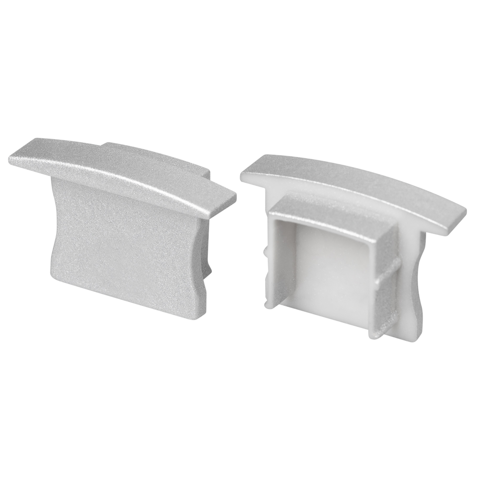 Пара заглушек для профиля LINE-2315-F. Цвет - серебристый. Материал - пластик. В комплекте 2 заглушки без отверстия. Цена за комплект.