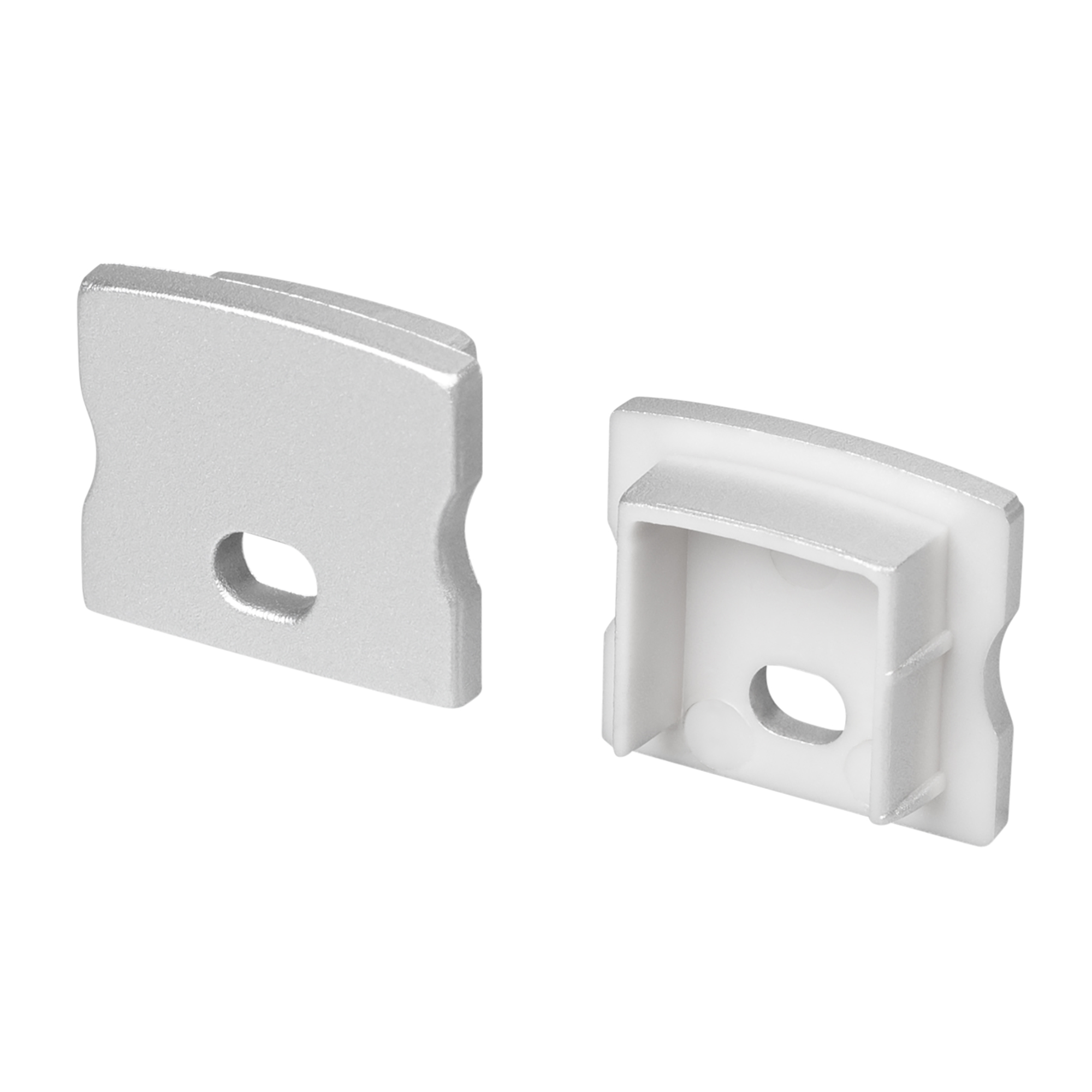 Заглушки серебристого цвета (2 шт.) с отверстием для профиля LINE-1715. Придают законченный вид светильнику, а также защищают светодиодную ленту от внешних факторов (грязи, пыли и прочего). Отверстие в заглушке позволяет вывести кабель питания светодиодной ленты.