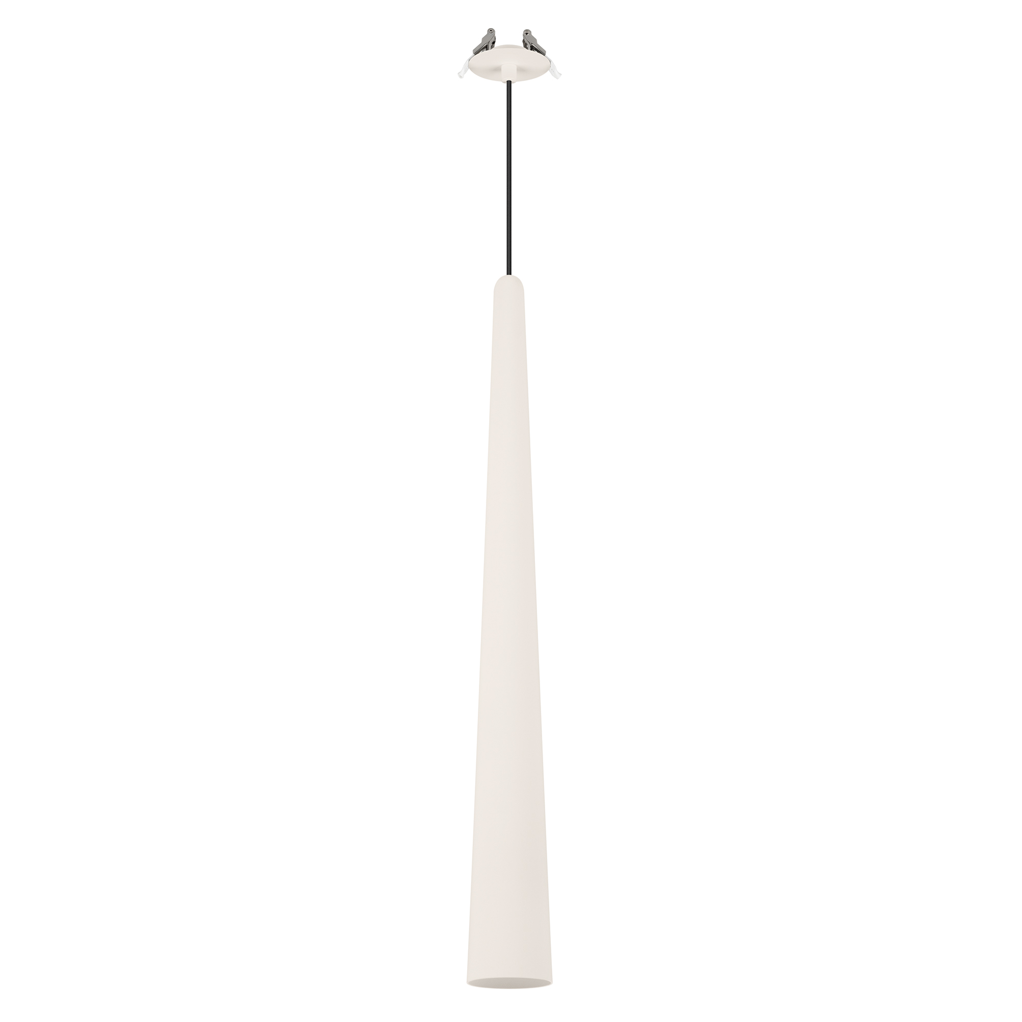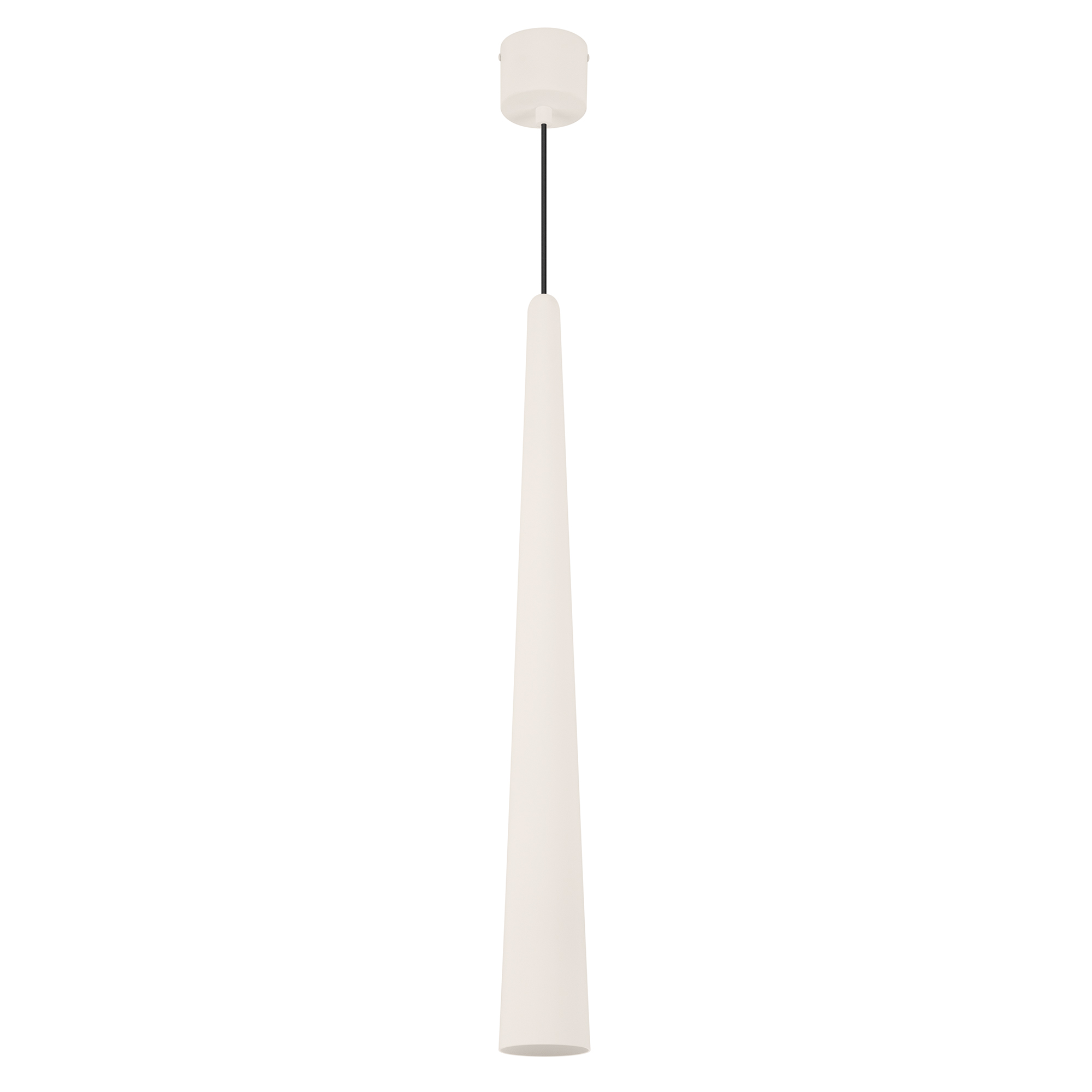 Подвесной светильник. Мощность 5 Вт, св. поток 400 лм, 70 лм/Вт, теплый 2700 K, CRI>92, угол 36°, напряжение питания 230 В. Кремовый конусообразный вытянутый корпус из алюминия, линза из PMMA, степень защиты IP20. Размер: диаметр 76 мм, высота 670 мм. Монтаж подвесной, длина подвеса 1330 мм, регулируемая. В комплекте 2 вида чаш. Габариты встраиваемой чаши: Ø 80x41 мм. Габариты накладной чаши Ø80x60 мм. Драйвер 2,8-12В, 500 мА, пульсация <1%.
