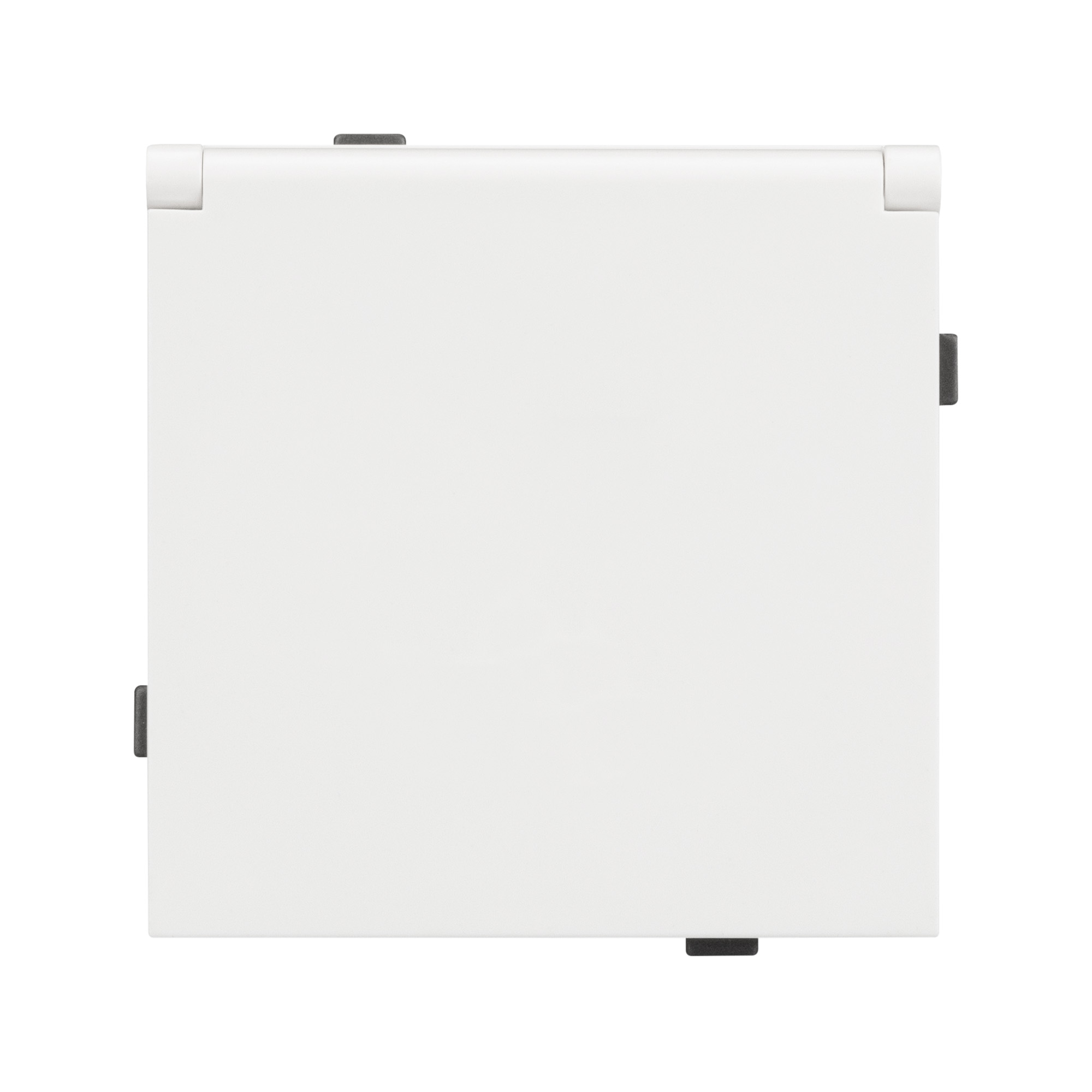 Механизм розетки с заземлением и влагозащитной крышкой совместим с рамками серии TENDO, создает утонченный минималистичный вид. Скрытый тип монтажа позволяет гармонично встроить в интерьер любого современного дизайн-проекта. Видимая часть механизма выполнена из высококачественного пластика матового белого цвета и имеет покрытие Soft-Touch.