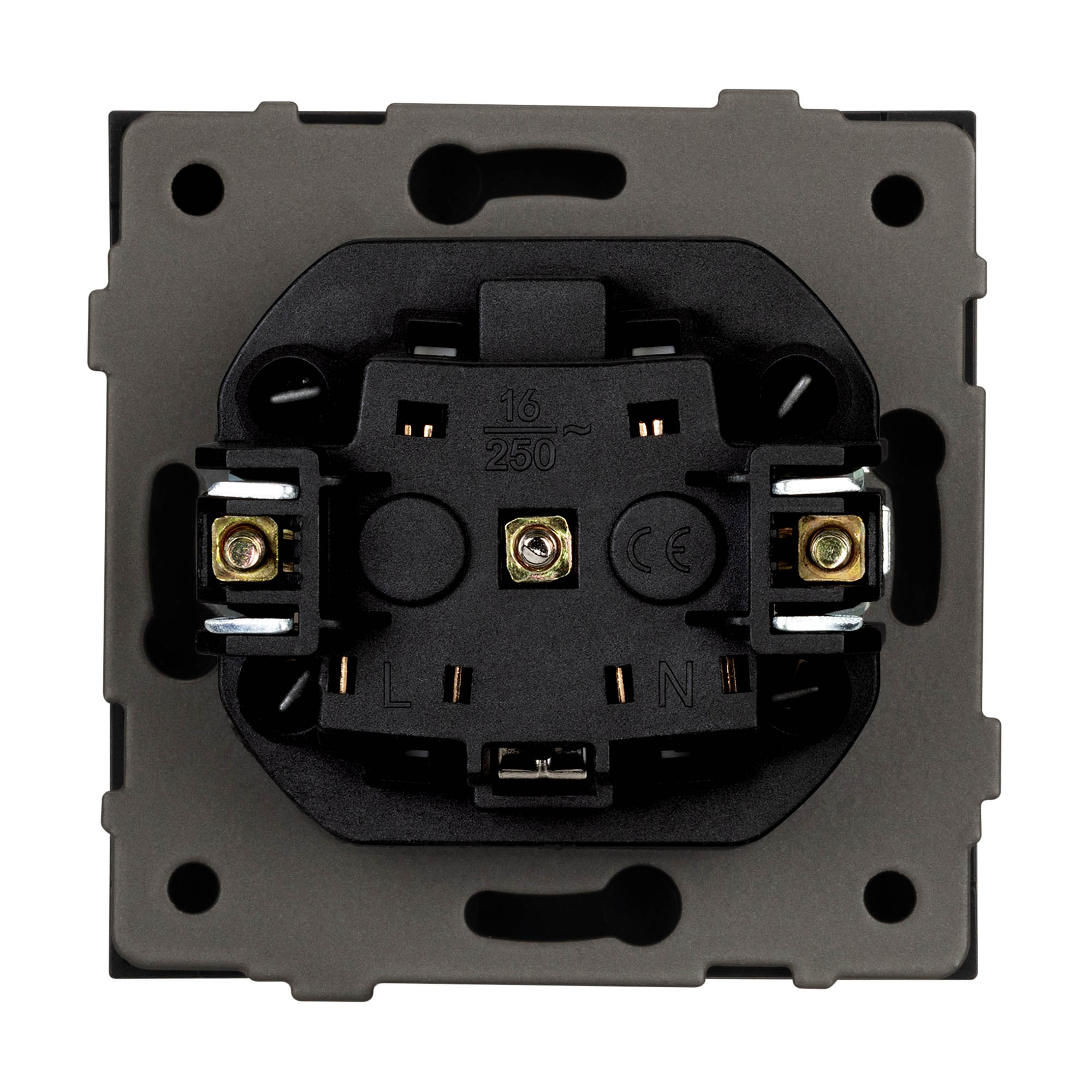 Механизм розетки с заземление совместим с рамками серии TENDO, создает утонченный минималистичный вид. Скрытый тип монтажа позволяет гармонично встроить в интерьер любого современного дизайн-проекта. Видимая часть механизма выполнена из высококачественного пластика матового графитового цвета и имеет покрытие Soft-Touch. Розетка оснащена защитными шторками, которые защищают механизм устройства от повреждений и загрязнений, а также обеспечивают безопасное использование для каждого пользователя. Металлический суппорт окрашен порошковой краской в несколько слоев и выполнен из металла толщиной 1,5мм, что обеспечивает безопасность и уверенность в установке. А усиленные распорные (монтажные) лапки надежно фиксируют механизм в стандартном установочном подрозетнике. На каждой стороне суппорта размещены фиксирующие элементы, позволяющие комбинировать механизмы в системы до 5шт как горизонтально, так и вертикально, под соответствующую рамку.