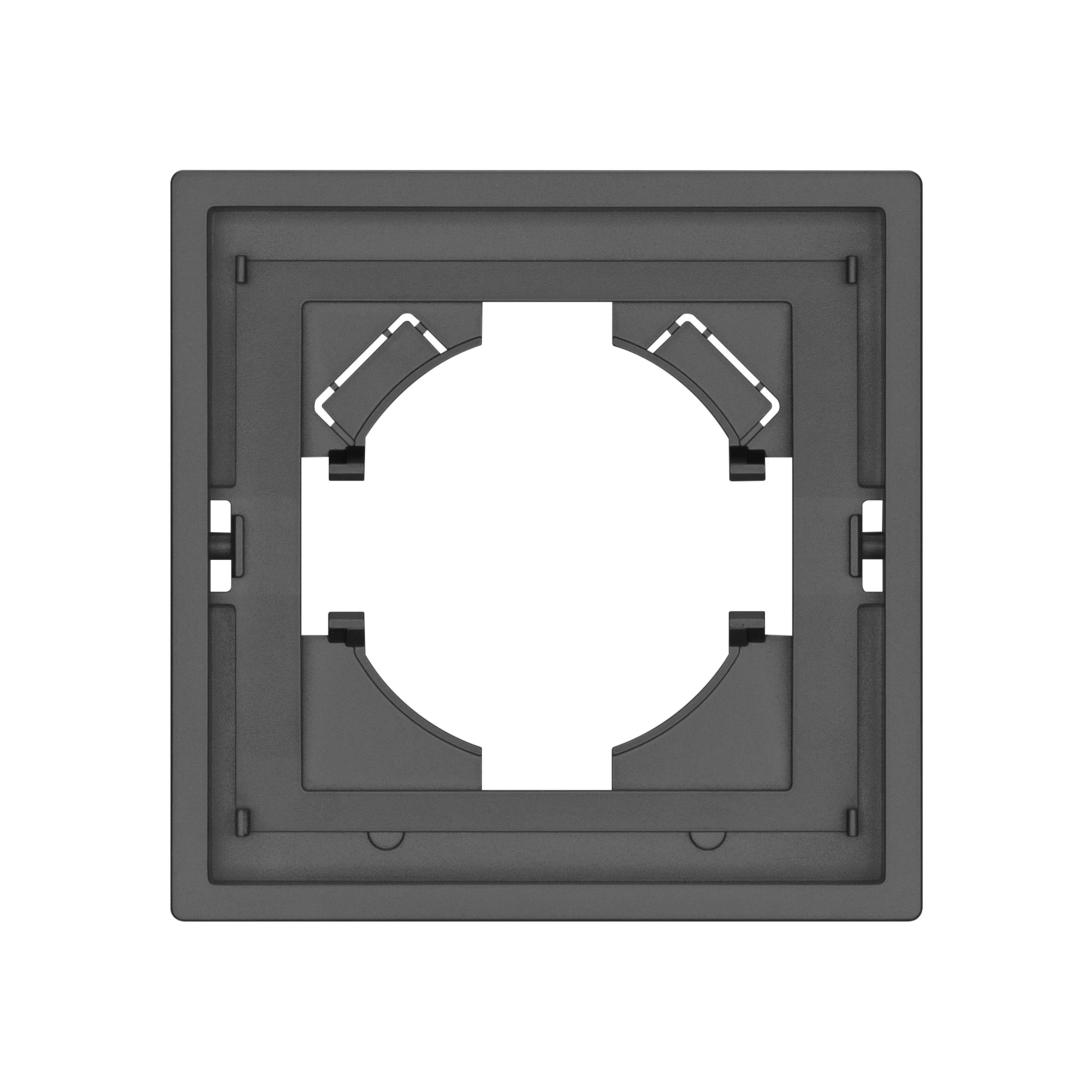 Рамка пластиковая на 1 пост, под встраиваемый механизм. Цвет - матовый графитовый, с Soft-Touch покрытием. Среднего уровня герметичности IP20. Ориентация монтажа горизонтальная. Габаритные размеры: длина 80 мм, ширина 80 мм, высота 9 мм. Гарантийный срок 12 мес.