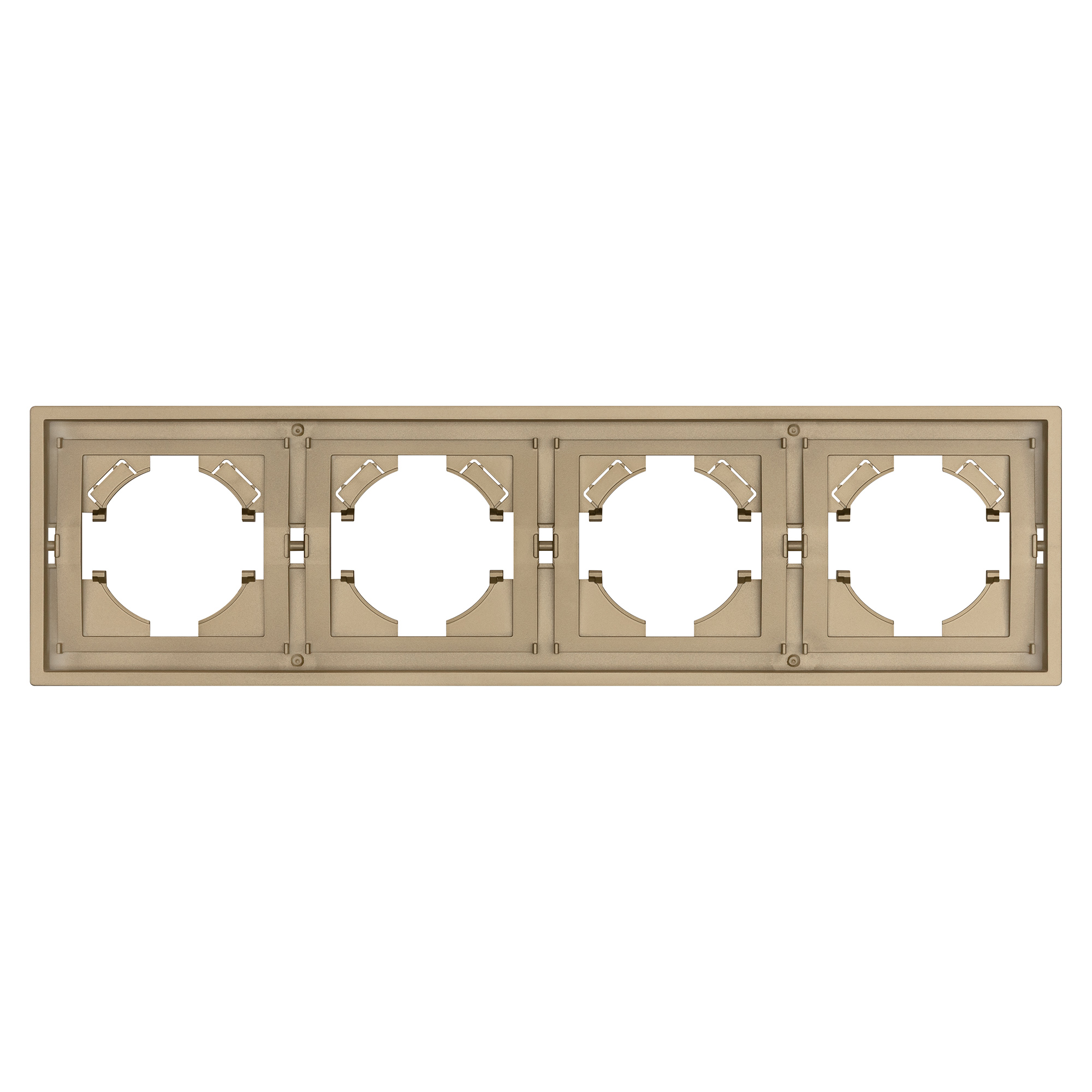 Рамка пластиковая на 4 поста, под встраиваемый механизм. Цвет - матовый песочный, с Soft-Touch покрытием. Среднего уровня герметичности IP20. Ориентация монтажа горизонтальная. Габаритные размеры: длина 294 мм, ширина 80 мм, высота 9 мм. Гарантийный срок 12 мес.