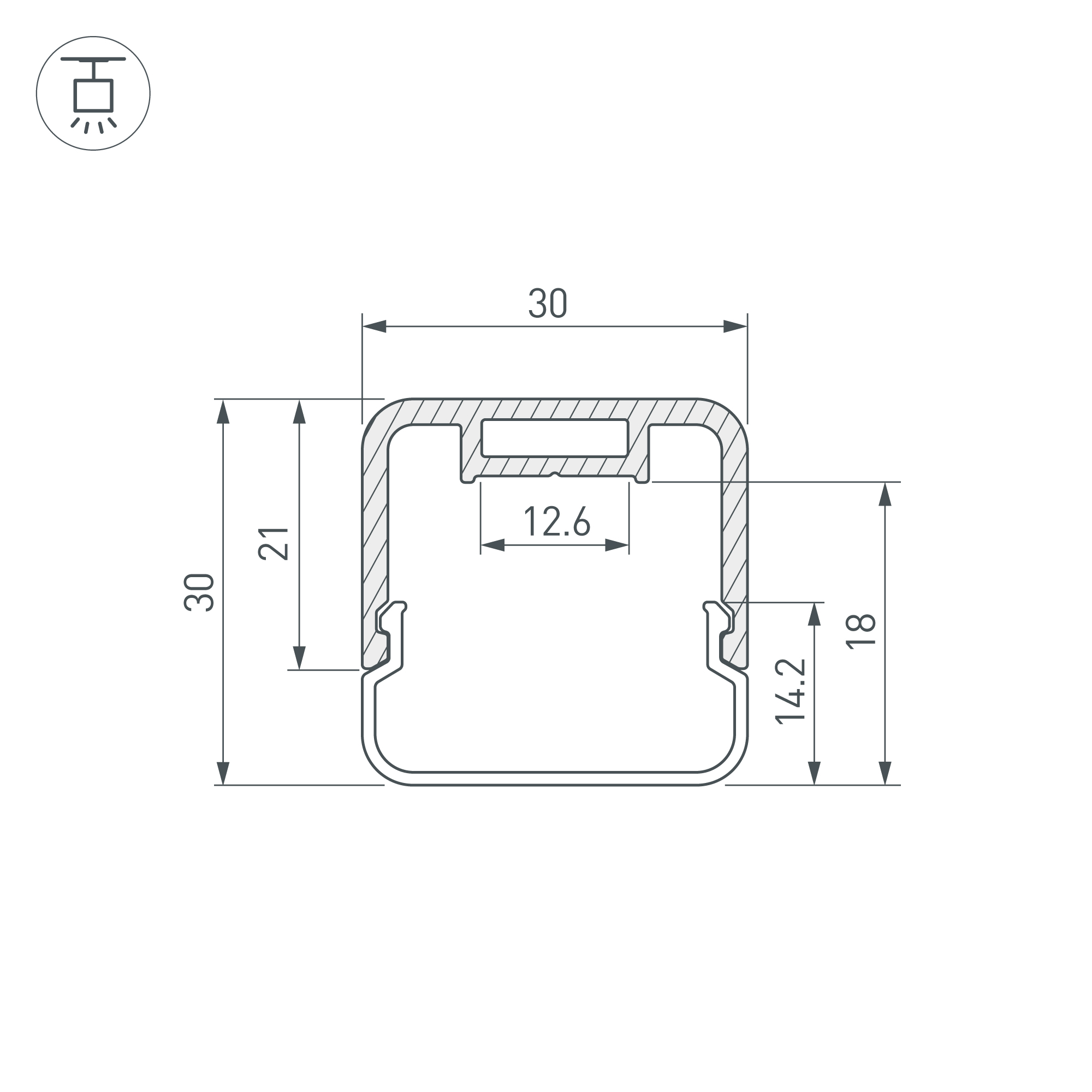 Габаритные размеры набора составляют 2000 мм в длину, 30 мм в ширину и 30 мм в высоту. Площадка для установки светодиодных лент позволяет использовать ленту шириной до 12,6 мм и мощностью до 26,8 Вт/м. Это обеспечивает гибкость в выборе светодиодных лент и создает потрясающие световые решения.