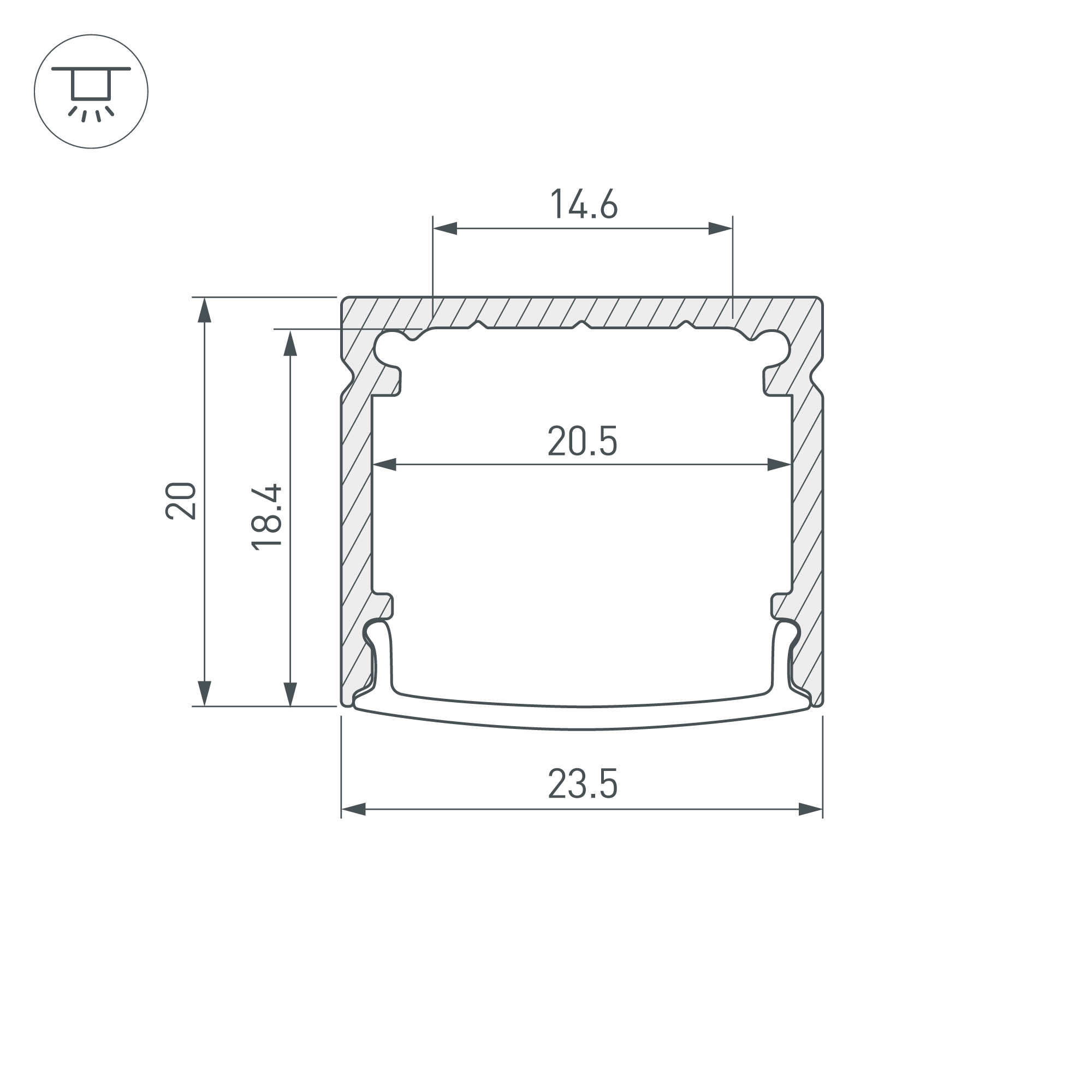 Накладной профильиз алюминия для основной и контурной подсветки помещений. Габаритные размеры профиля составляют 2000 мм в длину, 23,5 мм в ширину и 20 мм в высоту. Площадка для установки светодиодных лент позволяет использовать ленту шириной до 14,6 мм. Это обеспечивает гибкость в выборе светодиодных лент и создает потрясающие световые решения. Экраны, заглушки и другие аксессуары не включены в комплект и приобретаются отдельно. Цена указана за 1 метр профиля. Отличное решение для создания современных световых проектов.