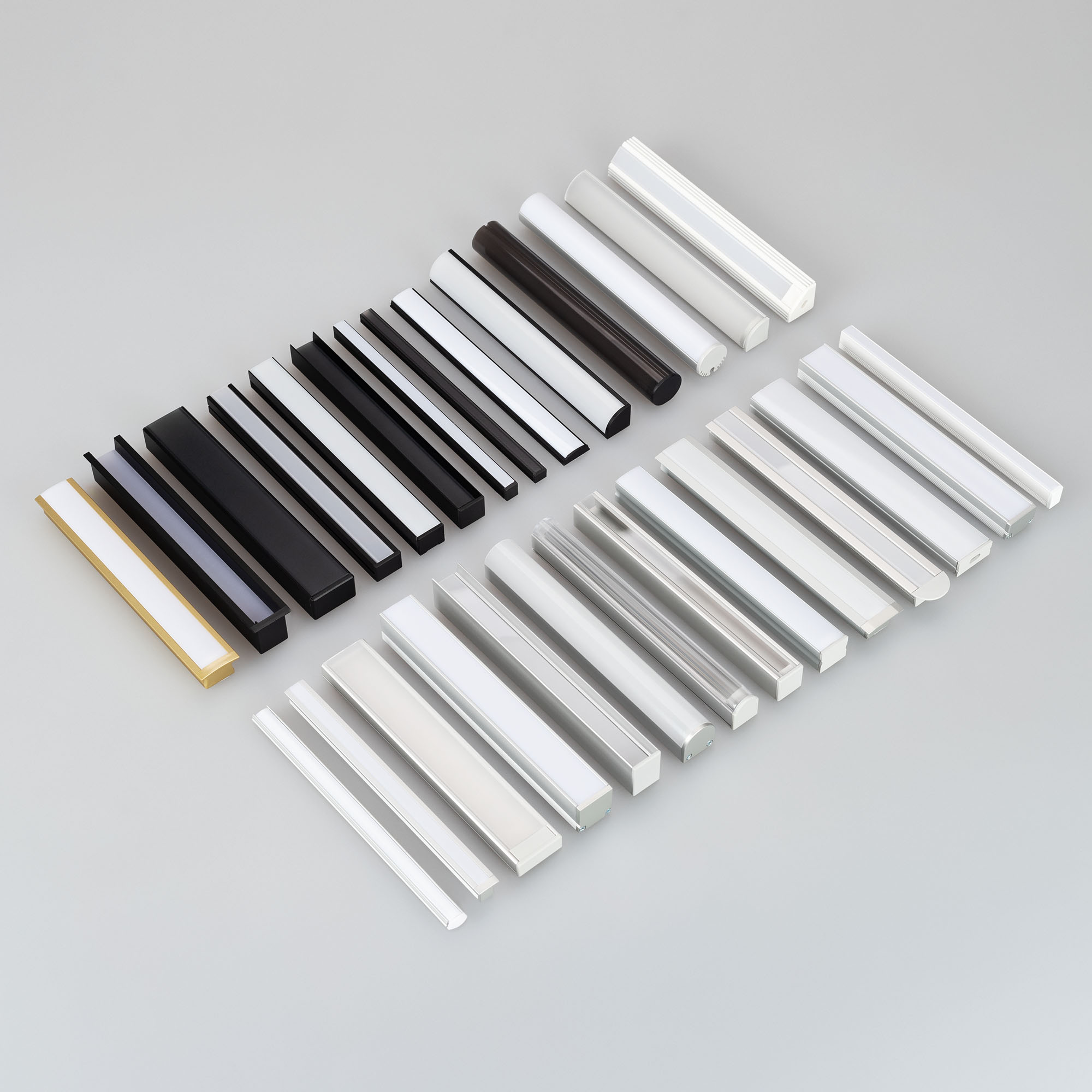 Набор образцов профилей для декоративной, контурной подсветки ARLIGHT с экранами и заглушками. Длина отрезков 150 мм.