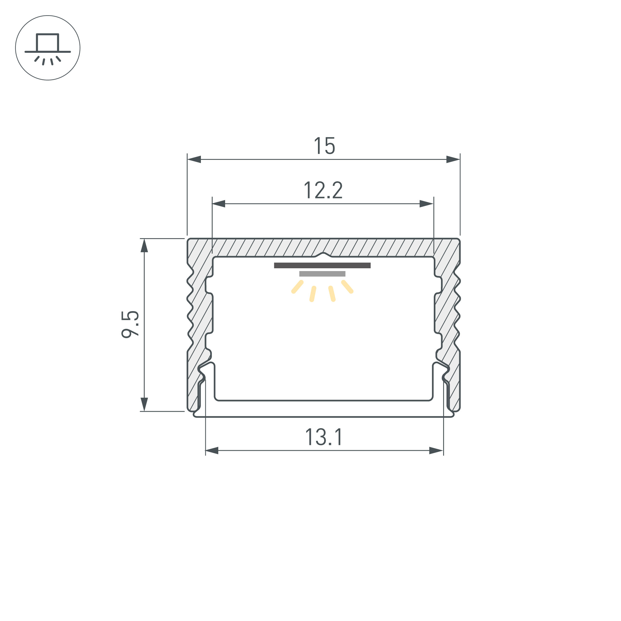 Накладной профиль из алюминия черного цвета для основного и дополнительного освещения интерьера. Габаритные размеры профиля составляют 2000 мм в длину, 15 мм в ширину и 9,5 мм в высоту. Площадка для установки светодиодных лент позволяет использовать ленту шириной до 12,2 мм и мощностью до 12 Вт/м. Это обеспечивает гибкость в выборе светодиодных лент и создает потрясающие световые решения.