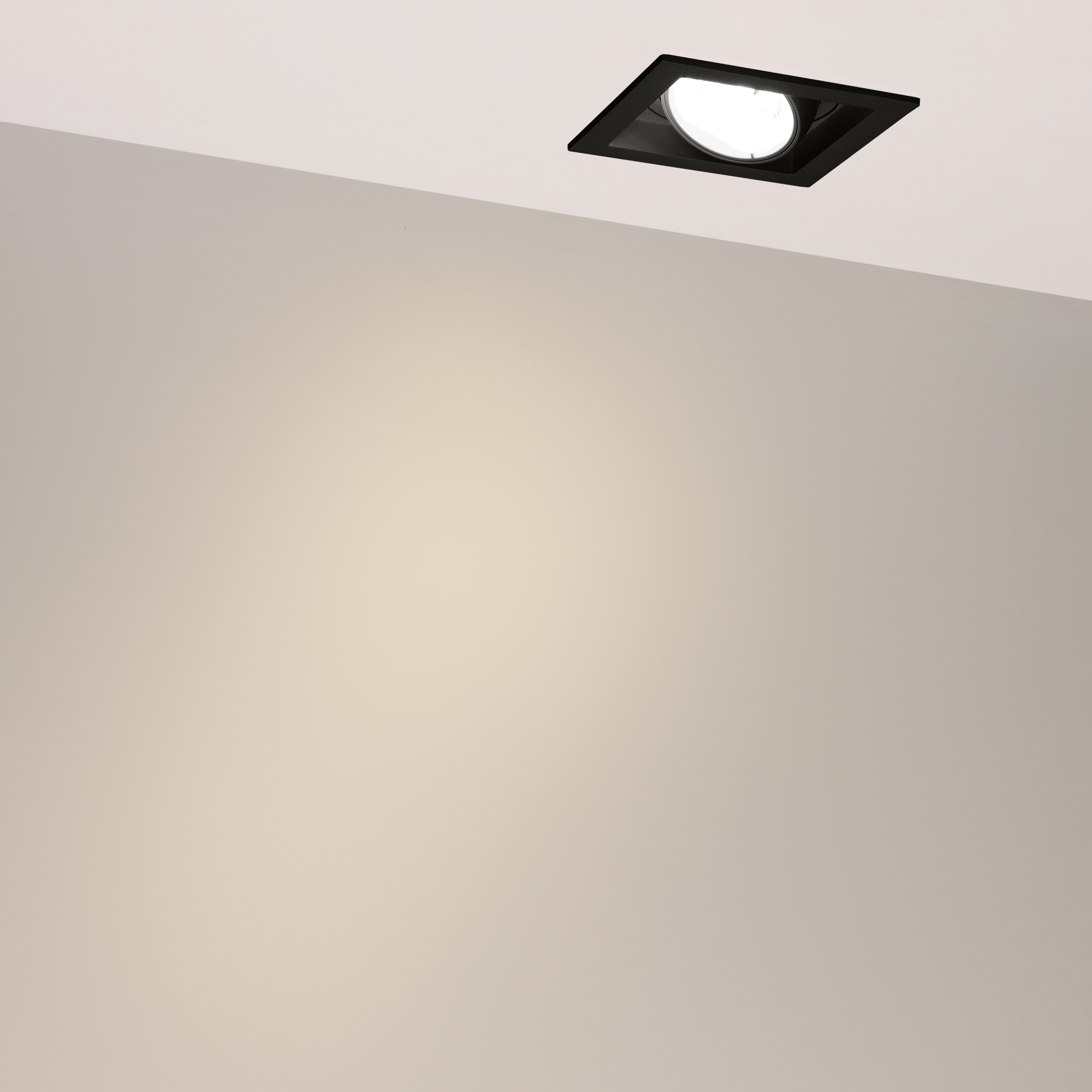 Поставка под заказ от 60 шт. Встраиваемый карданный светильник. Мощность 20 Вт, св. поток 2132 лм, 106 лм/Вт, тёплый 3000 K, CRI>92, угол 40°, напряжение питания 230 В. Чёрный корпус из алюминия, чёрная вставка, степень защиты IP20. Размер: длина 117 мм, ширина 117 мм, высота 105 мм. Монтаж встраиваемый, установочное отверстие: длина 95 мм, ширина 95 мм. Драйвер 24-42 В, 500 мА, пульсация <2%.