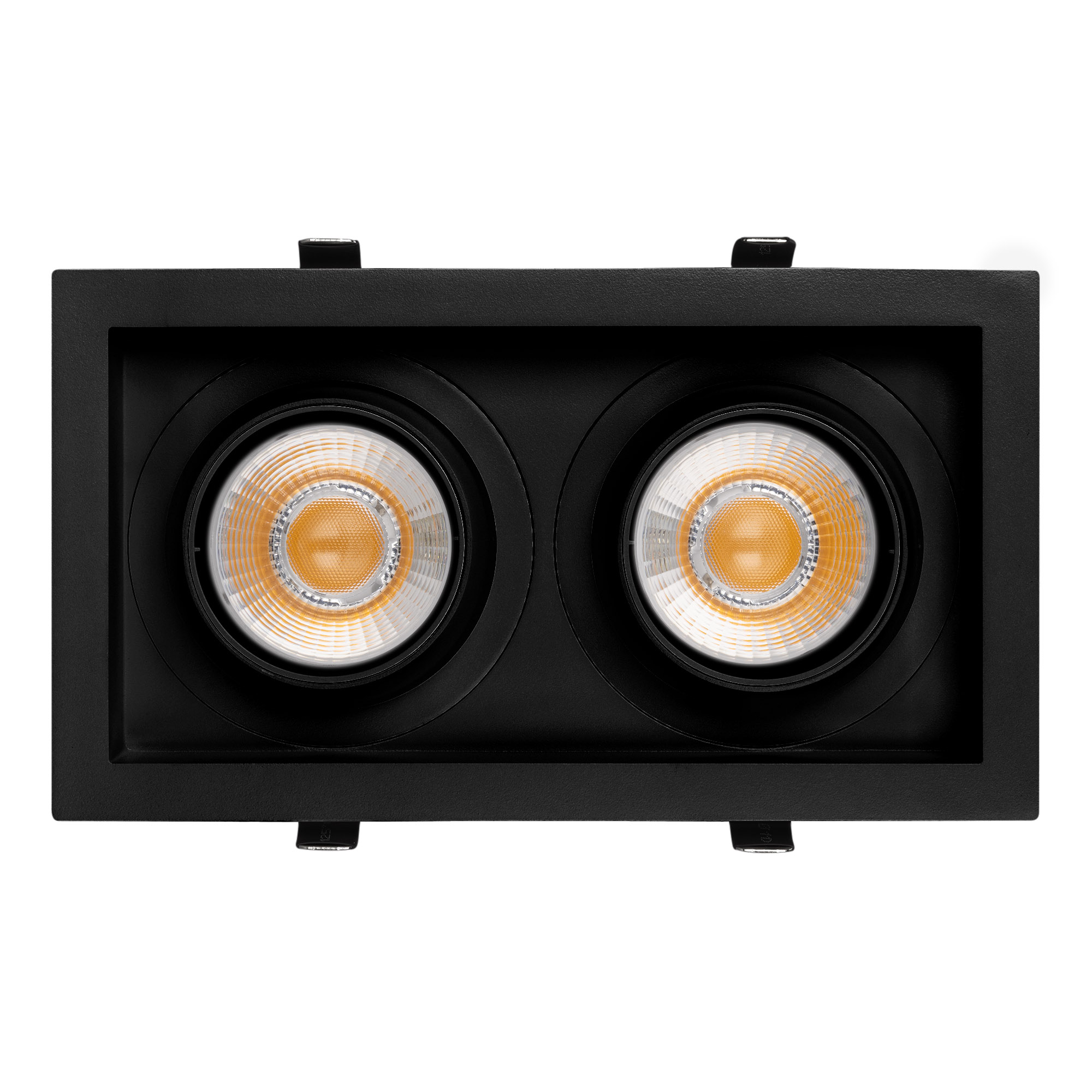 Поставка под заказ от 24 шт. Встраиваемый карданный светильник. Мощность 2х30 Вт, св. поток 6520 лм, 108 лм/Вт, тёплый 3000 K, CRI>92, угол 30°, напряжение питания 230 В. Чёрный корпус из алюминия, черная вставка, степень защиты IP20. Размер: длина 250 мм, ширина 140 мм, высота 125 мм. Монтаж встраиваемый, установочное отверстие: длина 230 мм, ширина 120 мм. Драйвер 24-42 В, 750 мА, пульсация <2%.