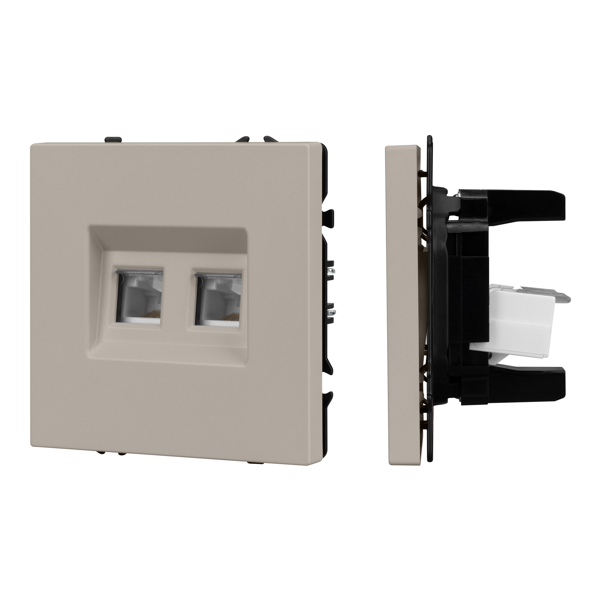 Механизм сдвоенной компьютерной розетки совместим с рамками серии NOBE, создает утонченный минималистичный вид. Скрытый тип монтажа позволяет гармонично встроить в интерьер любого современного дизайн-проекта. Видимая часть механизма выполнена из высококачественного пластика цвета кашемир и имеет Soft-Touch покрытие, что придает изделию приятные тактильные ощущения и стильный внешний вид.
