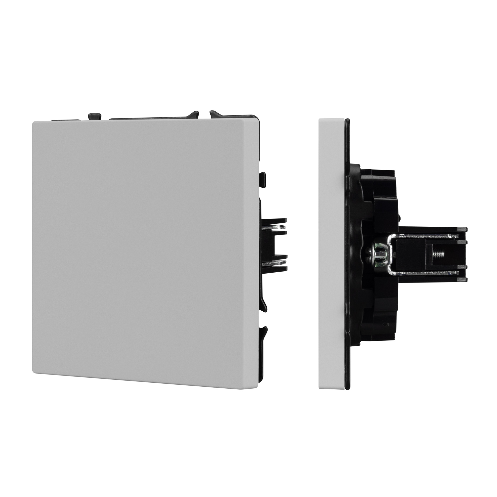 Строгие геометрические линии гармонично сочетаются с функциональностью продуманных механизмов, создавая идеальное решение для дизайн-проектов, где важны как эстетика, так и практичность. Заглушка поста совместима с рамками серии NOBE, создает утонченный минималистичный вид. Скрытый тип монтажа позволяет гармонично встроить в интерьер любого современного дизайн-проекта. Видимая часть выполнена из высококачественного пластика цвета никель и имеет Soft-Touch покрытие, что придает изделию приятные тактильные ощущения и стильный внешний вид. Заглушка предназначена для перекрытия поста под дальнейшее размещение механизма, не имеет питающих элементов и выполняет декоративную функцию. Усиленные распорные лапки двойного захвата надежно фиксируют устройство в установочном подрозетнике круглого сечения диаметром 60мм. Суппорт окрашен в черный матовый цвет и выполнен из металла толщиной 1,5мм, что обеспечивает безопасность и уверенность в установке. На каждой стороне суппорта размещены фиксирующие элементы, позволяющие комбинировать механизмы в системы до 5шт как горизонтально, так и вертикально.