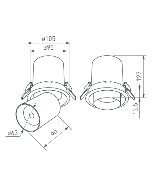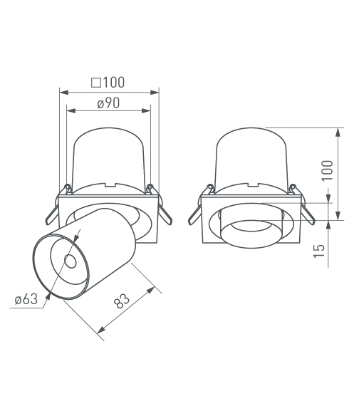 Интересное исполнение светодиодной части, круглая или квадратная встраиваемая база. Уникальный поворотно-выдвижной механизм светильника позволяет поворачивать световой модуль на 360° и регулировать его наклон на 90°, легко изменяя направление светового потока.