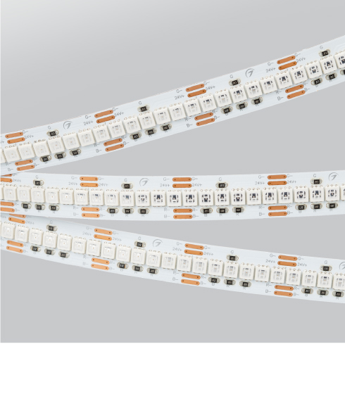 Мультицветные ленты, серия G240. Тип светодиодов 3838 (G), 240 светодиодов на 1 метр. Мультицветная подсветка ниш, декора. Световые линии с изменяемым цветом свечения.