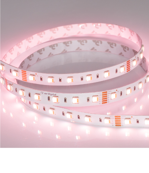 Ленты RGBW-MIX с управлением цветом и тоном, серия B60. Тип светодиодов 5060 (B), 60 светодиодов на 1 метр. Лента 5-в-1 со смешением цветов и белых тонов. Декоративная мультицветная подсветка ниш, элементов интерьера.