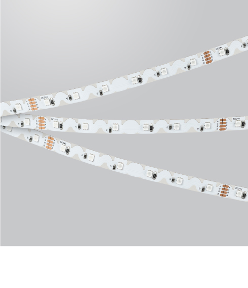 Мультицветная лента линейки RZ со специальной формой платы в виде волны, позволяющей изгибать ленту на плоскости, серия A60. Тип светодиодов 2835 (A), 60 светодиодов на 1 метр. Мультицветная подсветка ниш, декора, витрин и вывесок, рекламных конструкций, букв, ниш, криволинейных форм. Световые линии с изменяемым цветом свечения.