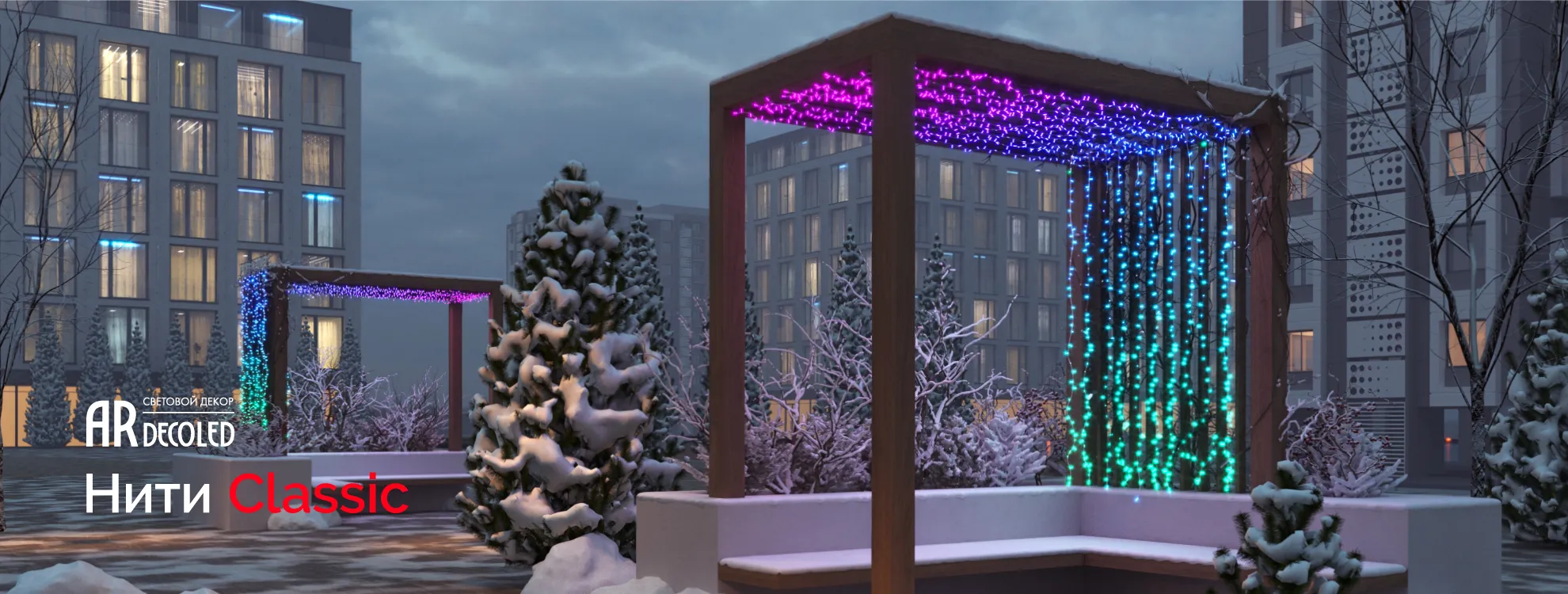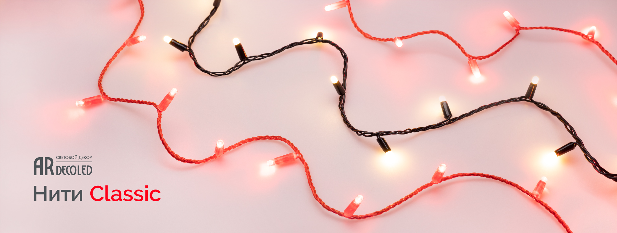 Гирлянды «Нити» серии CLASSIC универсальны и отличаются широкими возможностями применения как внутри помещений, так и на улице под навесом. Разместите гирлянду-нить на стеллаже, подоконнике или в нише, создайте надпись на стене или декоративную композицию в прозрачных вазах. Идеально подходит для подсветки окон в кафе и магазинах.