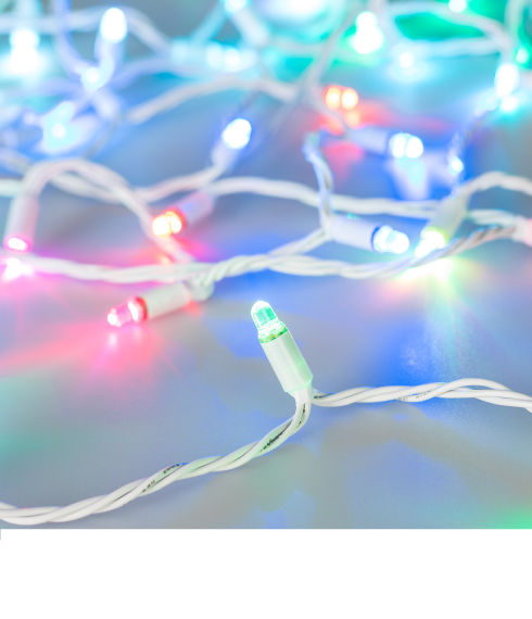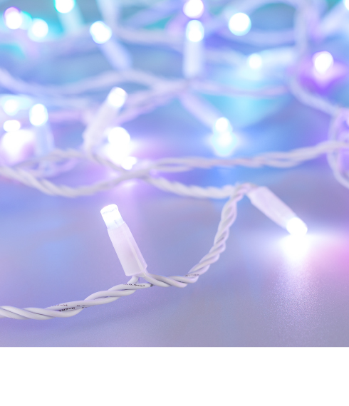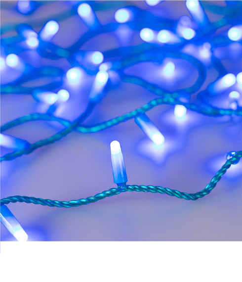 За счет универсальных соединителей гирлянды можно соединять друг с другом в длину до 50 м, что позволяет оформлять фасады зданий и просторные помещения.
