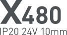 Основное преимущество бескорпусных лент COB — эффект сплошной линии света без применения рассеивателей (экранов). За счет заливки люминофором по всей длине ленты образуется равномерное свечение без видимых точек светодиодов. COB-ленты серии Х480 FreeCut имеют свободную резку, что позволяет создавать подсветку различной формы и длины, ленты предназначены для декоративной подсветки интерьера, а также оформления рекламы и витрин. Тип светодиодов — CSP (X).