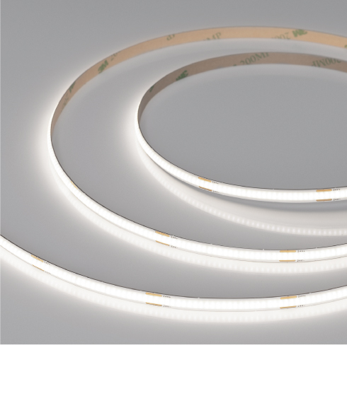 Основное преимущество бескорпусных лент COB — эффект сплошной линии света без применения рассеивателей (экранов). За счет заливки люминофором по всей длине ленты образуется равномерное свечение без видимых точек светодиодов. COB-ленты серии Х480 предназначены для декоративной подсветки интерьера, а также оформления рекламы и витрин. Тип светодиодов — CSP (X).