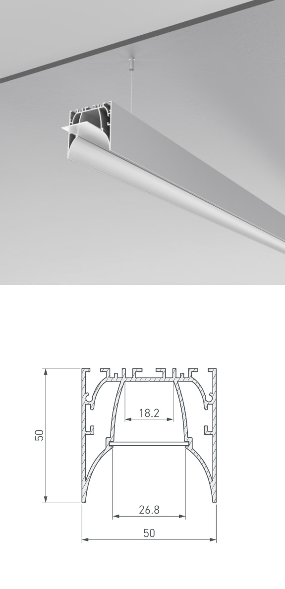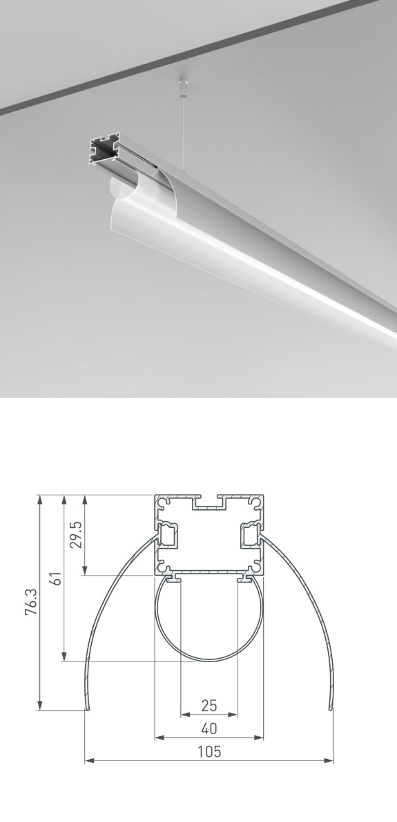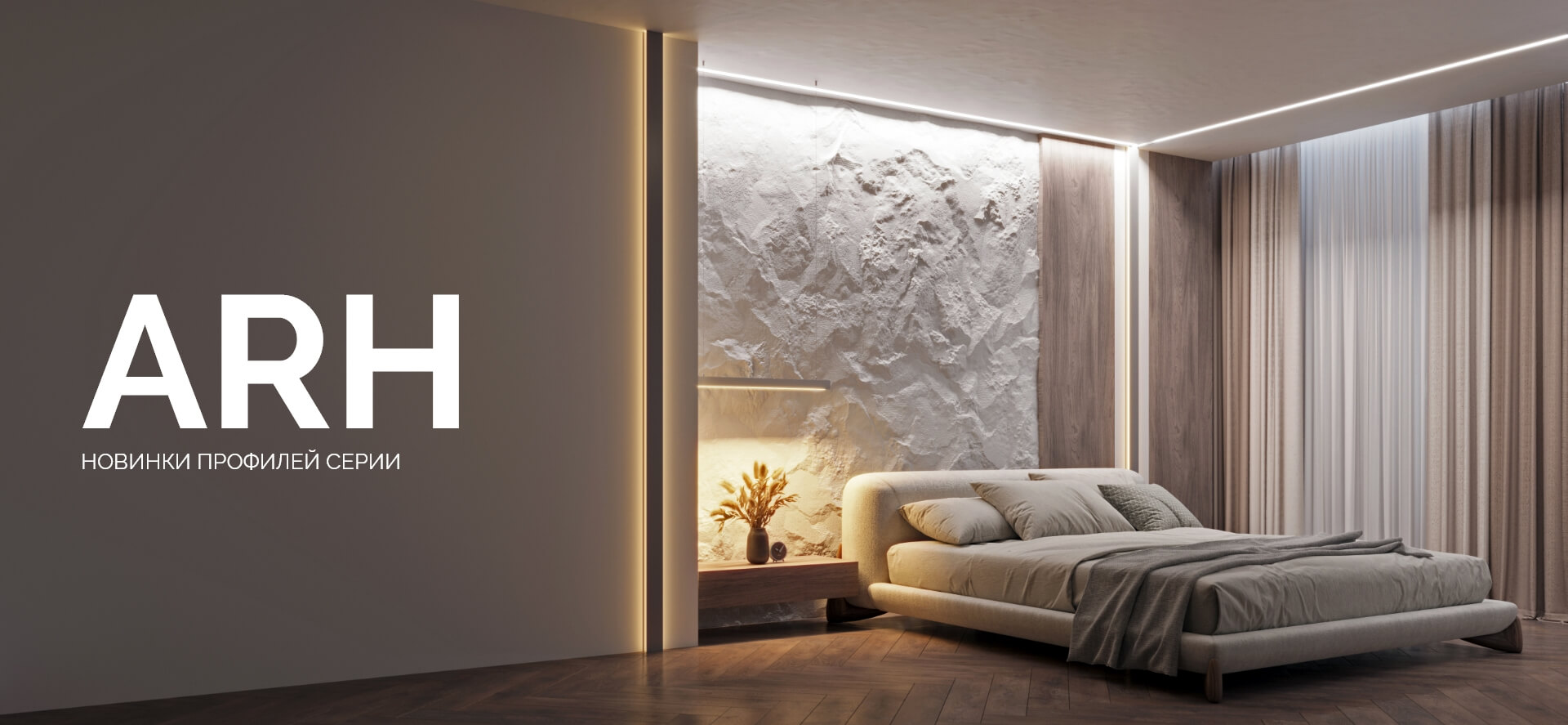 Расширение серии ARH профилями различного назначения: от декоративной подсветки до создания основного освещения, в том числе для создания настенных светильников-бра и линейных светильников с круглым экраном.