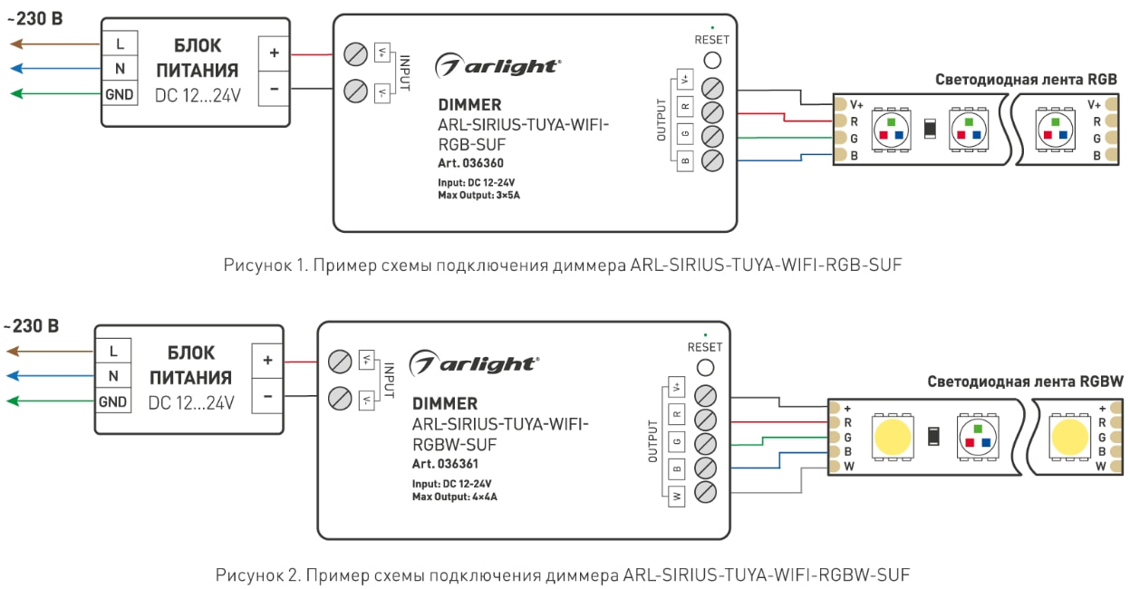 Новинки диммеров ARL-SIRIUS-TUYA-WIFI с управлением TUYA для светодиодных RGB и RGBW-лент (12–24 В).