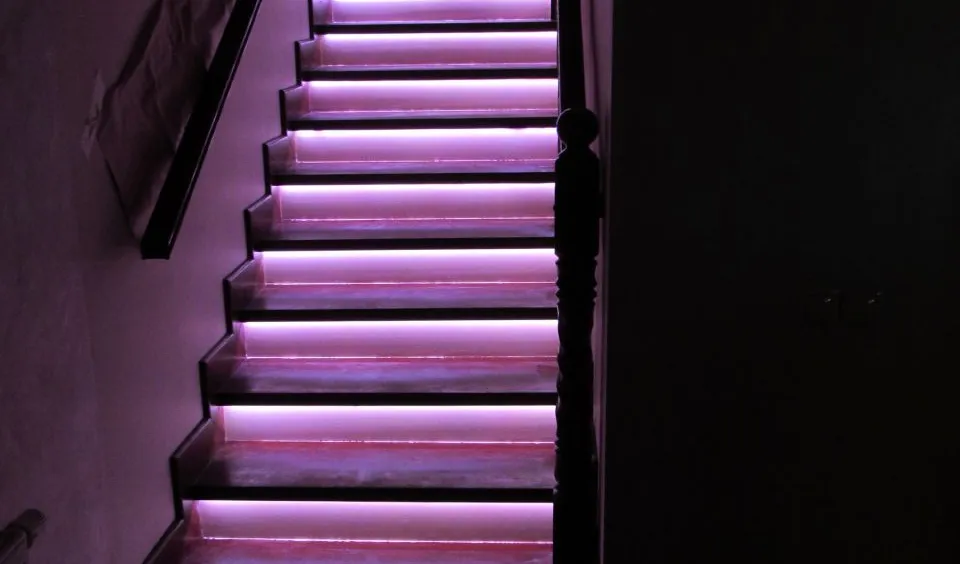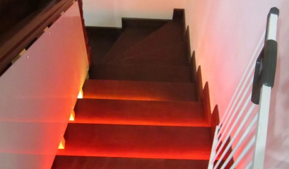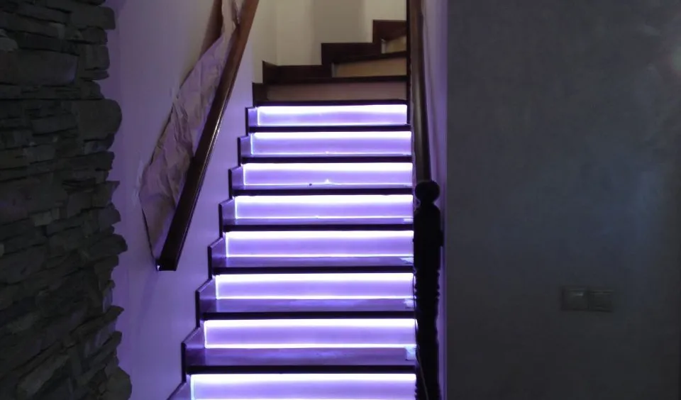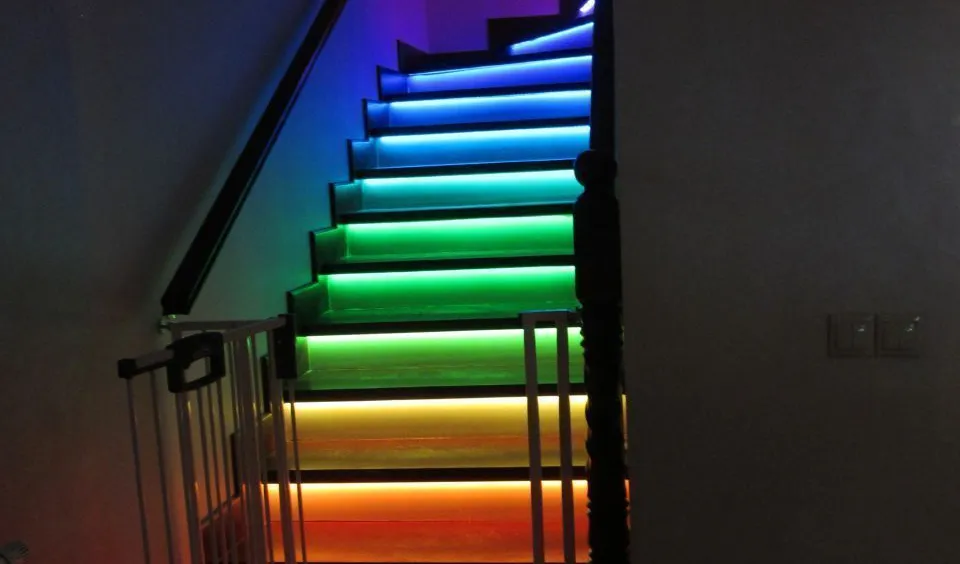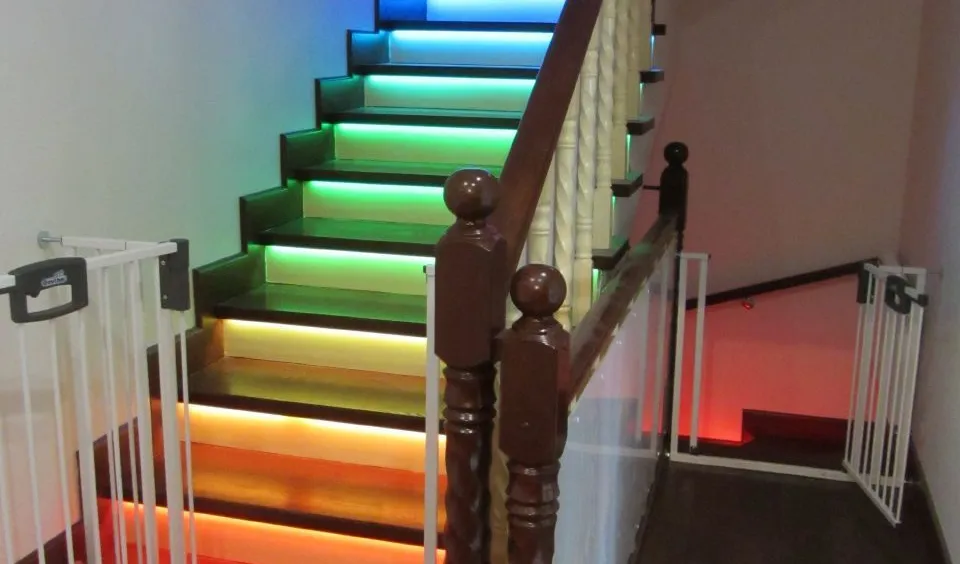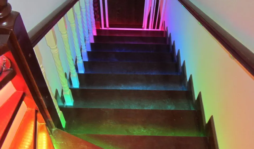 Динамическая многоцветная светодиодная подсветка лестницы