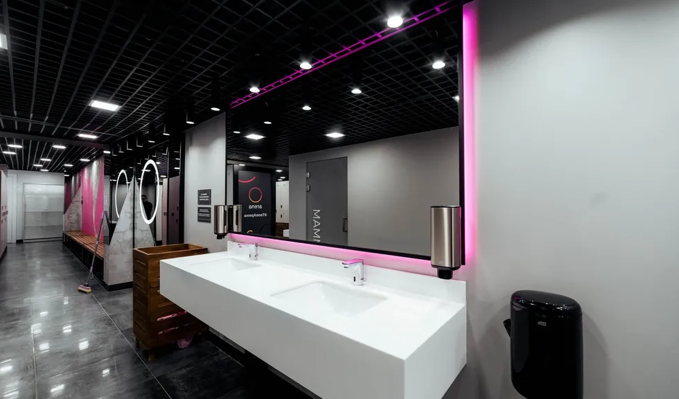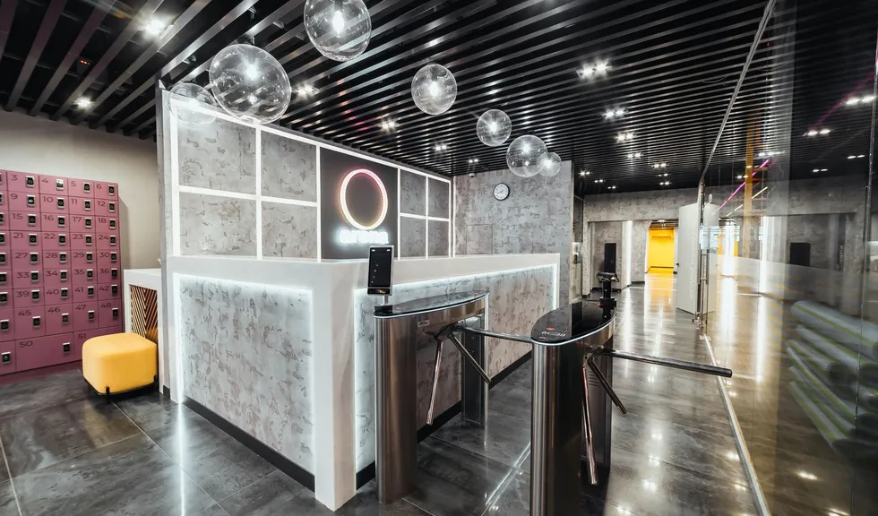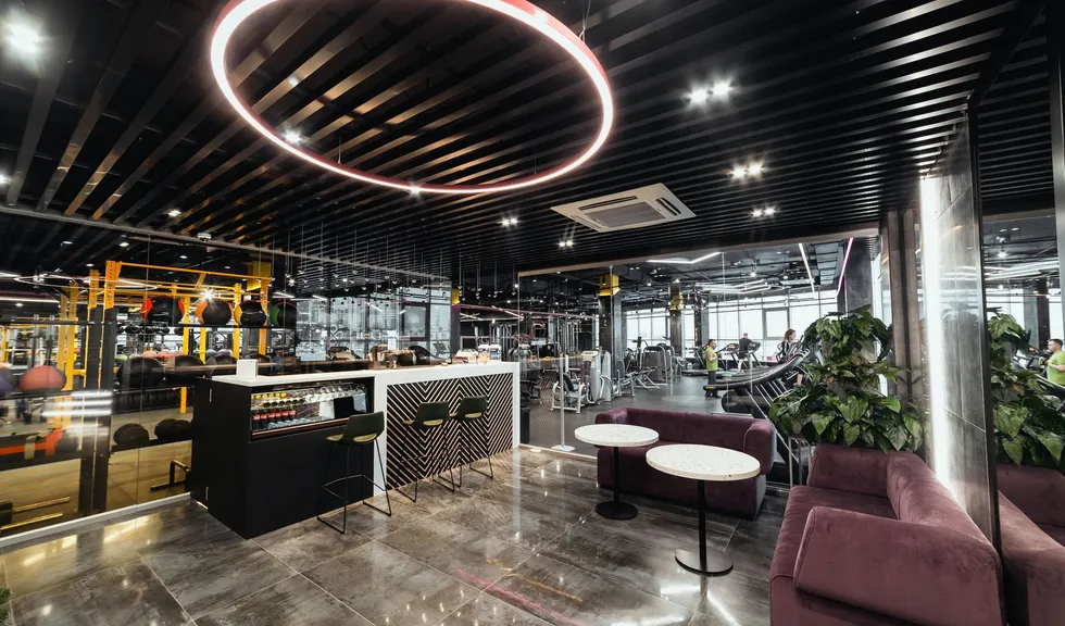 С помощью подвесных светильников из профиля, выполненных в виде стрелок, получилось показать динамику и вдохновить посетителей клуба на активные тренировки. За счет использования профилей с матовым экраном достигается эффект приятного рассеянного освещения.