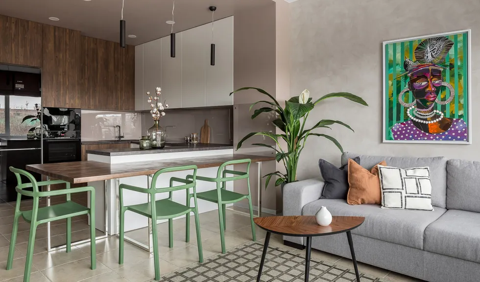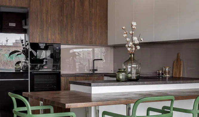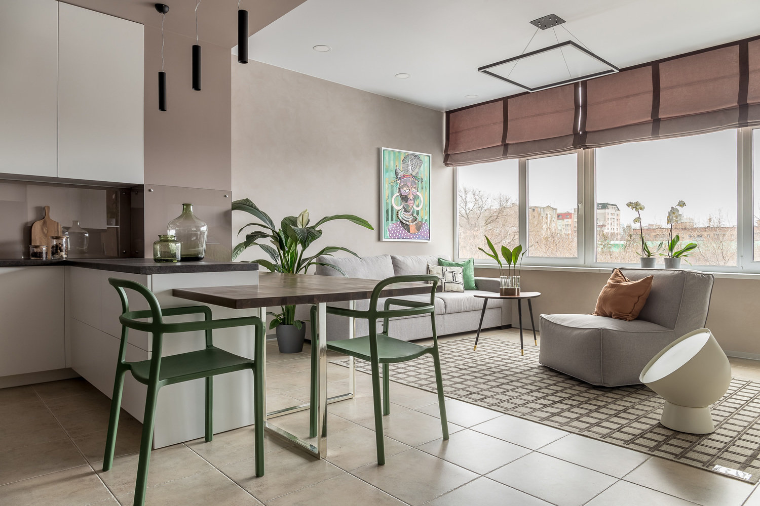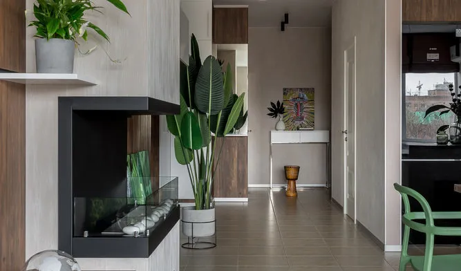 Минимум лишних деталей и стильный дизайн — такой девиз выбрали дизайнеры проекта. Освещение в коридоре и кухне-гостиной реализовано с помощью встраиваемых светодиодных панелей, которые обеспечивают хороший основной свет. Чтобы организовать локальную подсветку рабочей зоны кухни, использовали анодированный профиль со светодиодной лентой.