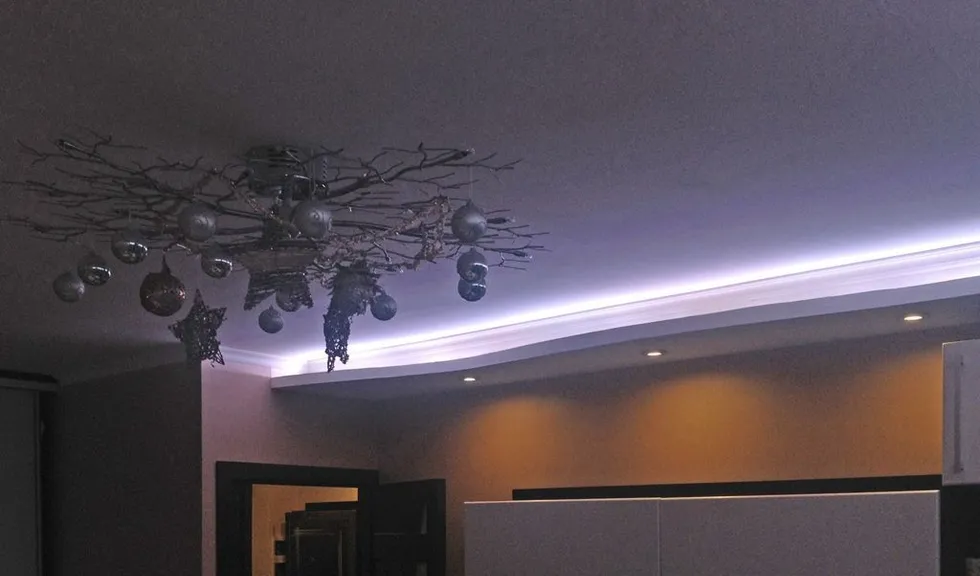 Декоративная закарнизная подсветка в квартире добавит новые нотки в интерьер. Применение многоцветной светодиодной ленты arlight® и RGB контроллера arlight® дает возможность добавить новые краски и подстроить обстановку под настроение.