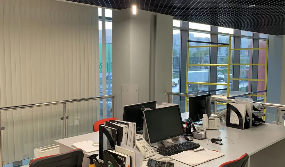 Зоны с потолками высотой до 3.5 м, в которых находятся офисы и часть выставочного зала, освещаются трековыми линейными светильниками. За счет широкого угла излучения создается яркий свет, полностью освещающий пространство.