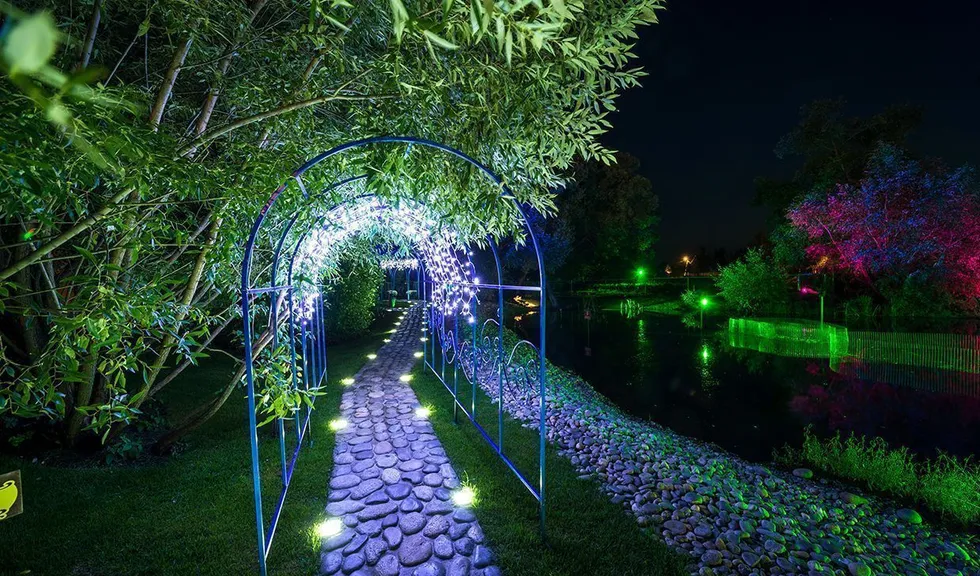 Проект светодиодной ландшафтной подсветки и светодиодной подсветки садового мостика над декоративным водоёмом в небольшом парке.