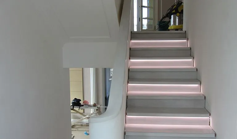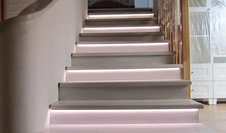 В данном проекте приведено несколько примеров светодиодной подсветки лестниц.