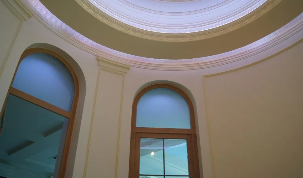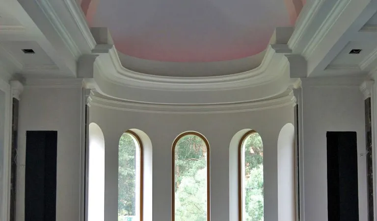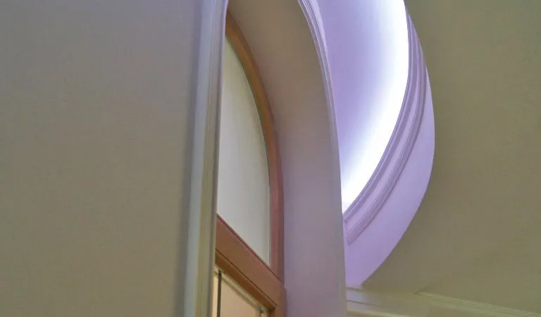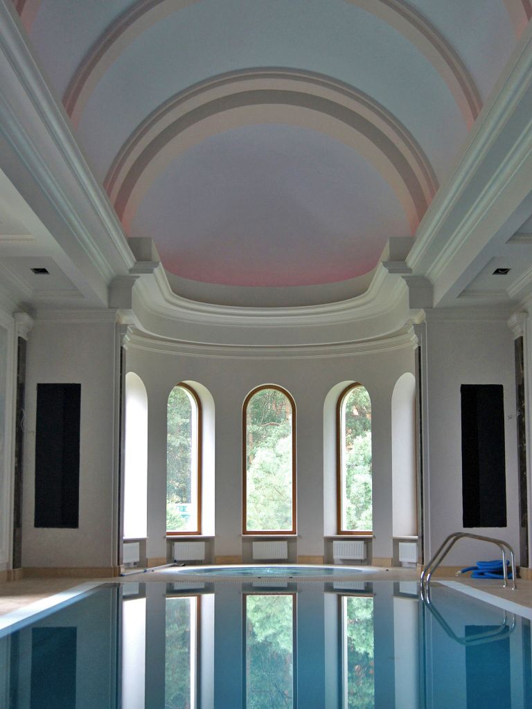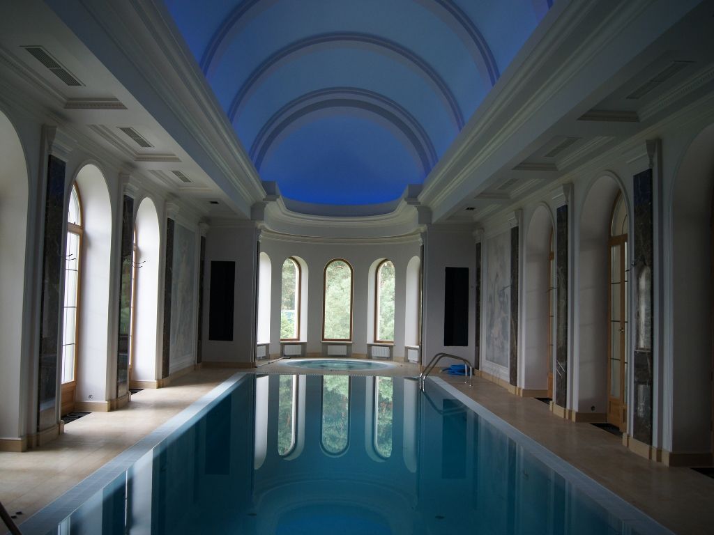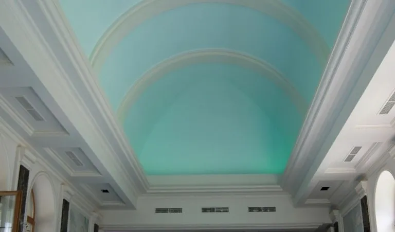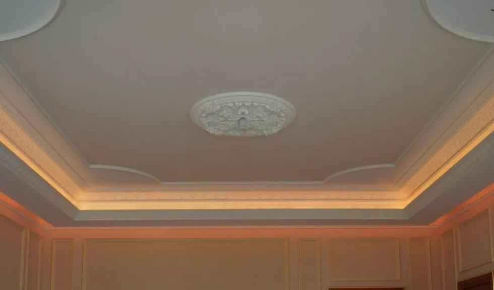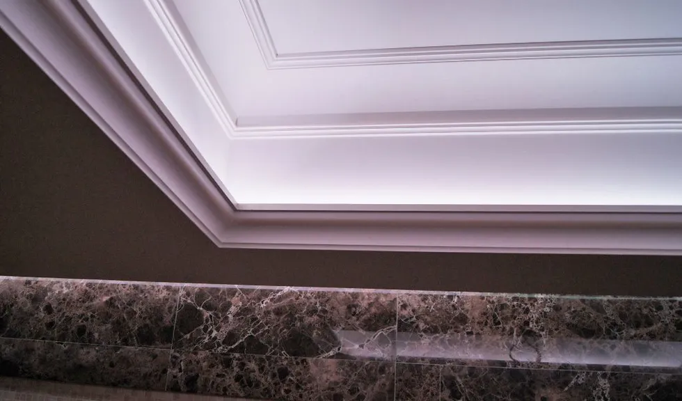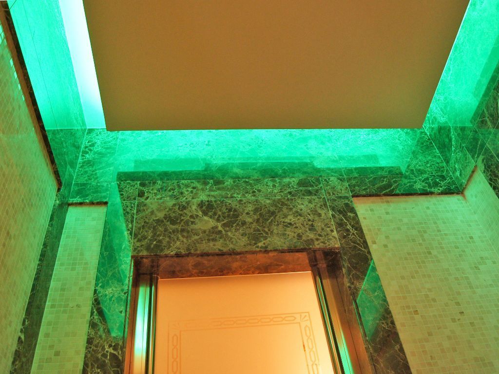Светодиодное освещение было установлено в загородном доме, интерьер которого выполнен в классическом стиле. Декоративная контурная подсветка, установленная за полиуретановыми карнизами, придала внутренней обстановке дома сказочность и неповторимость.