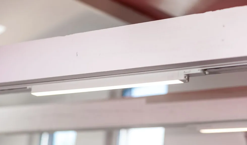 Для основного освещения было применено интересное решение: в деревянные потолочные балки были встроены треки (шинные профили) для светильников. На них установлены светодиодные трековые светильники и линейные светодиодные светильники. Линейные светильники были собраны из алюминиевого профиля, в который установлена светодиодная лента arlight® тёплого белого цвета свечения и блок питания для неё.