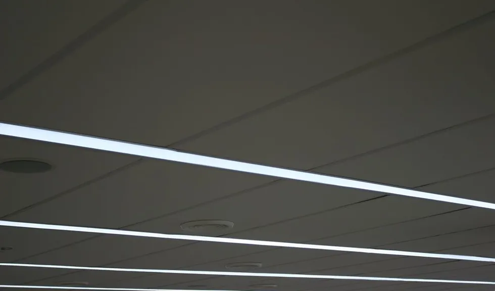 Светодиодное освещение торговых площадей в книжном магазине было выполнено двумя способами. Первый - освещение многоуровневого гипсокартонного потолка, второй - линейные светильники с матовым стеклом, встроенные в потолок Армстронг. Эти светильники создали эффект равномерных световых линий. В обоих вариантах освещения применялось светодиодная продукция торговой марки arlight®.