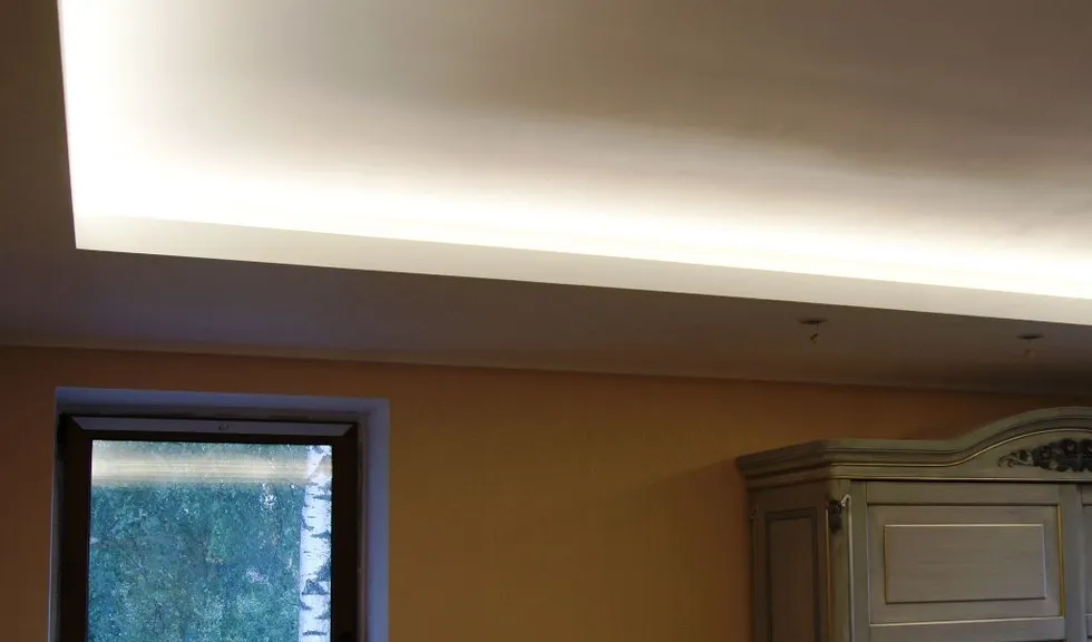 Скрытая светодиодная подсветка, установленная за гипсокартонным потолком, дает мягкий равномерный рассеянный свет. Применение диммеров
