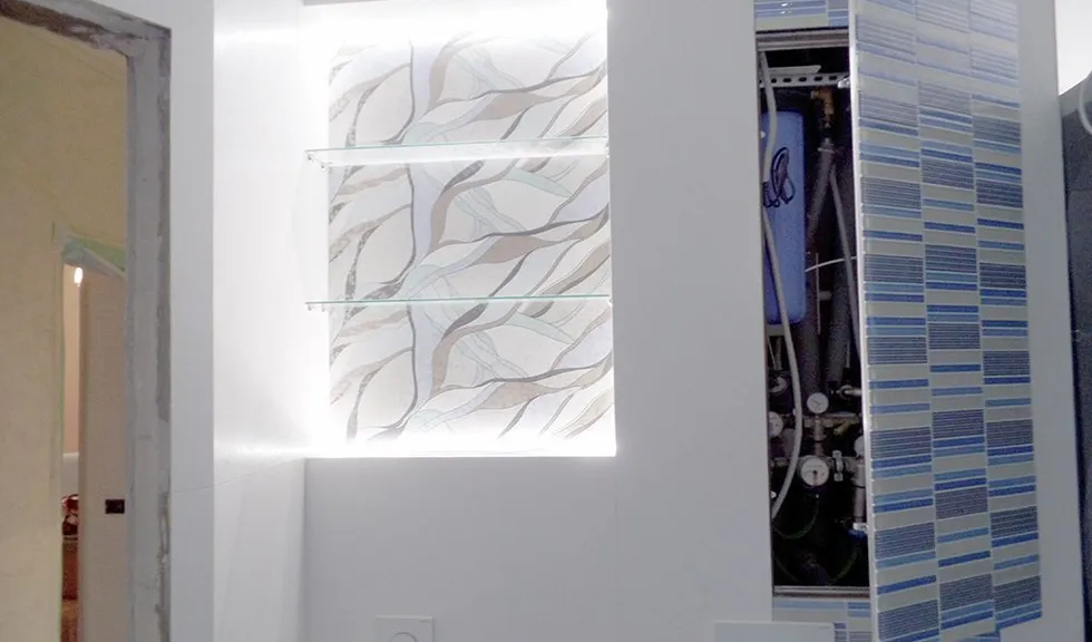 В ванной комнате и столовой организовали одноцветную подсветку, служащую дополнительным источником освещения. Для этого были использованы светодиодные ленты arlight® белого и дневного белого свечения соответственно. В ванной были подсвечены стеклянные полки в нише для хранения и угловой шкаф. В столовой - многоуровневый потолок. Для регулировки их яркости были установлены диммеры.